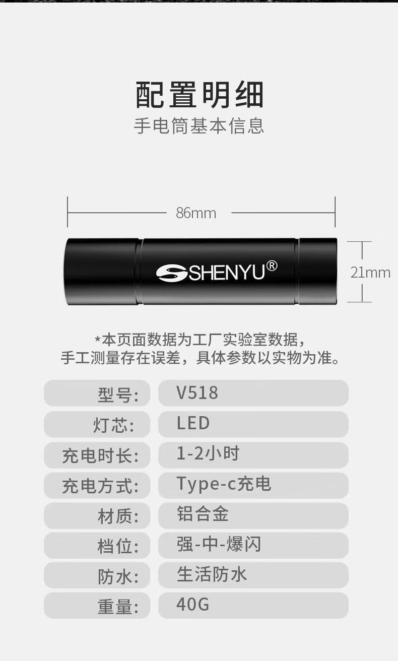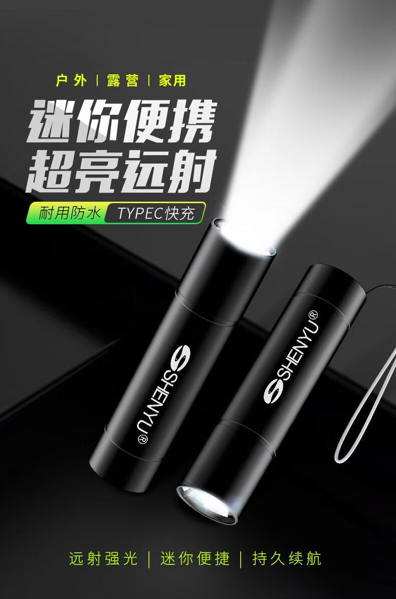 Shenyu 미니 손전등 슈퍼 밝은 장거리 야외 홈 휴대용 학생 노인 조명 충전식 LED