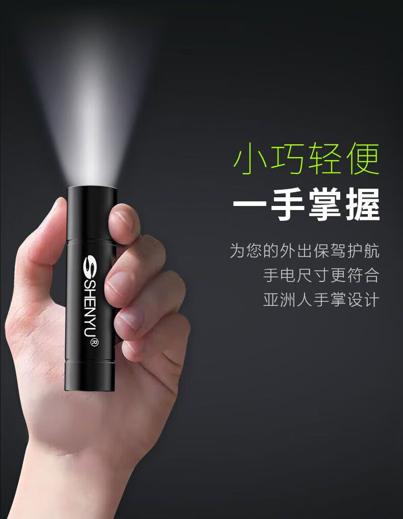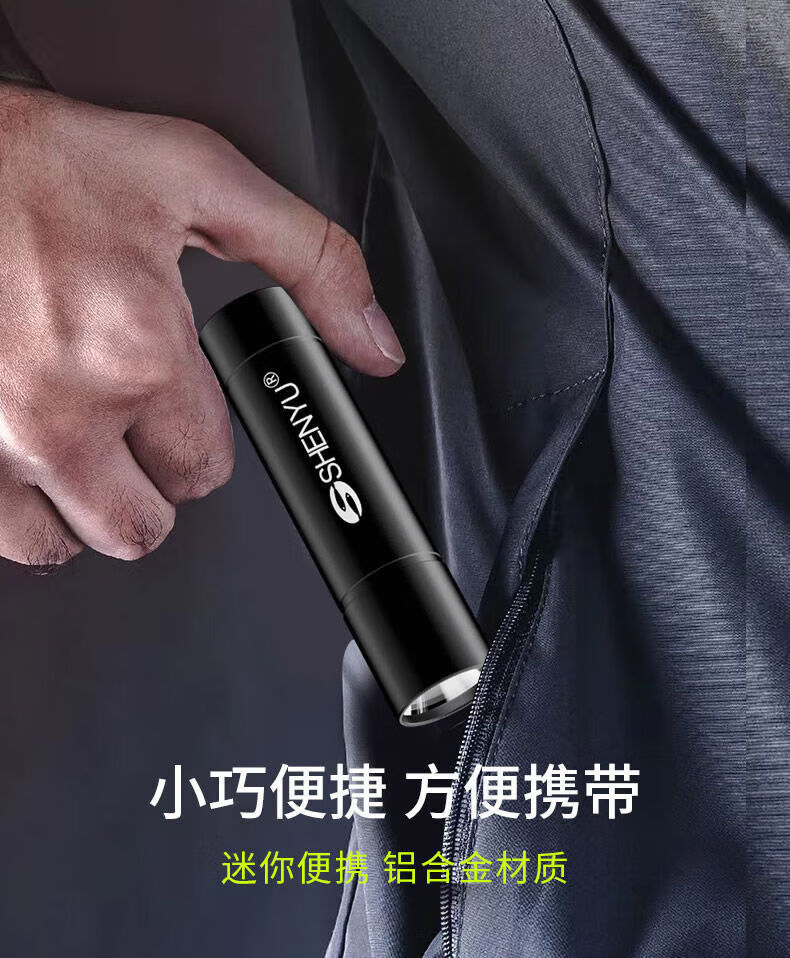 Shenyu 미니 손전등 슈퍼 밝은 장거리 야외 홈 휴대용 학생 노인 조명 충전식 LED스토어 가기