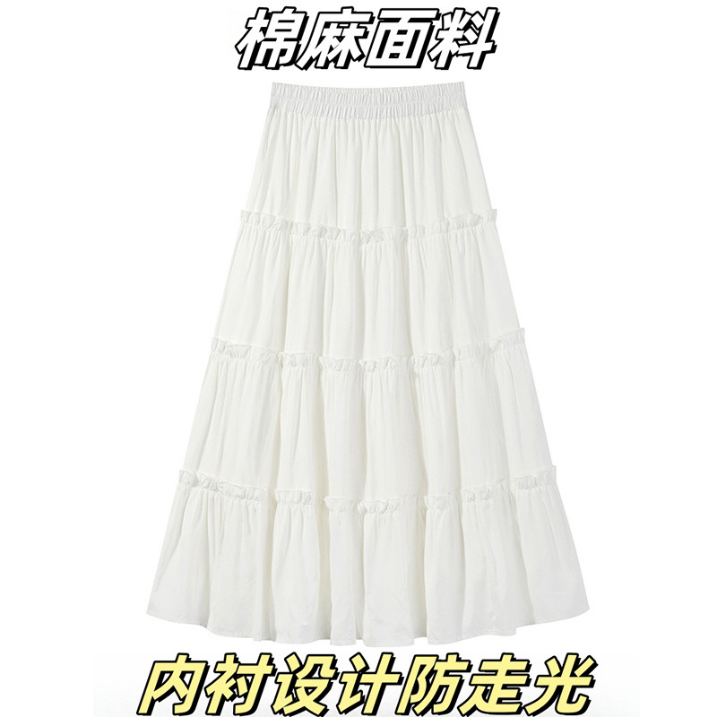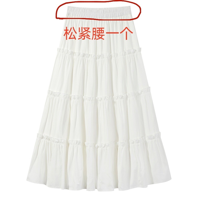 화이트 스커트 여자의 새로운 높은 허리 슬리밍 모든 경기 중간 길이 스커트 주름 케이크 스커트