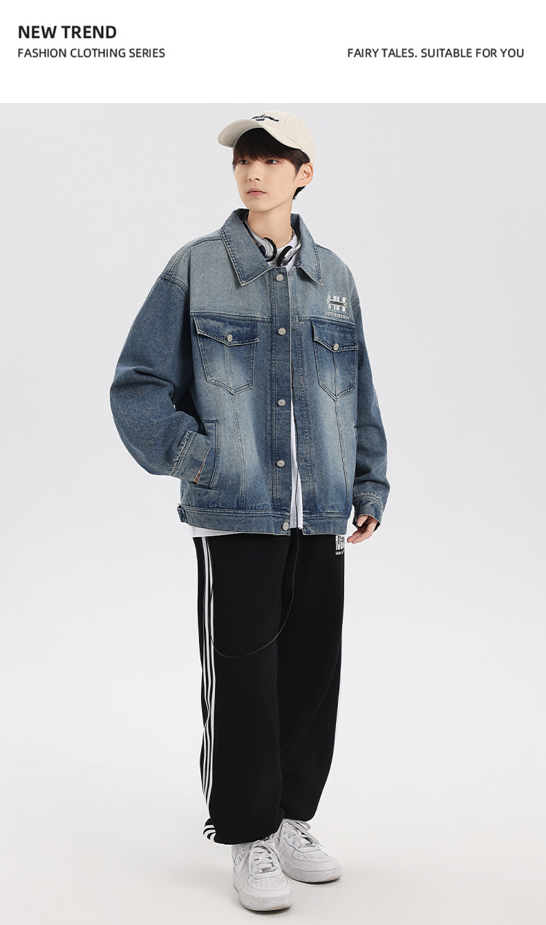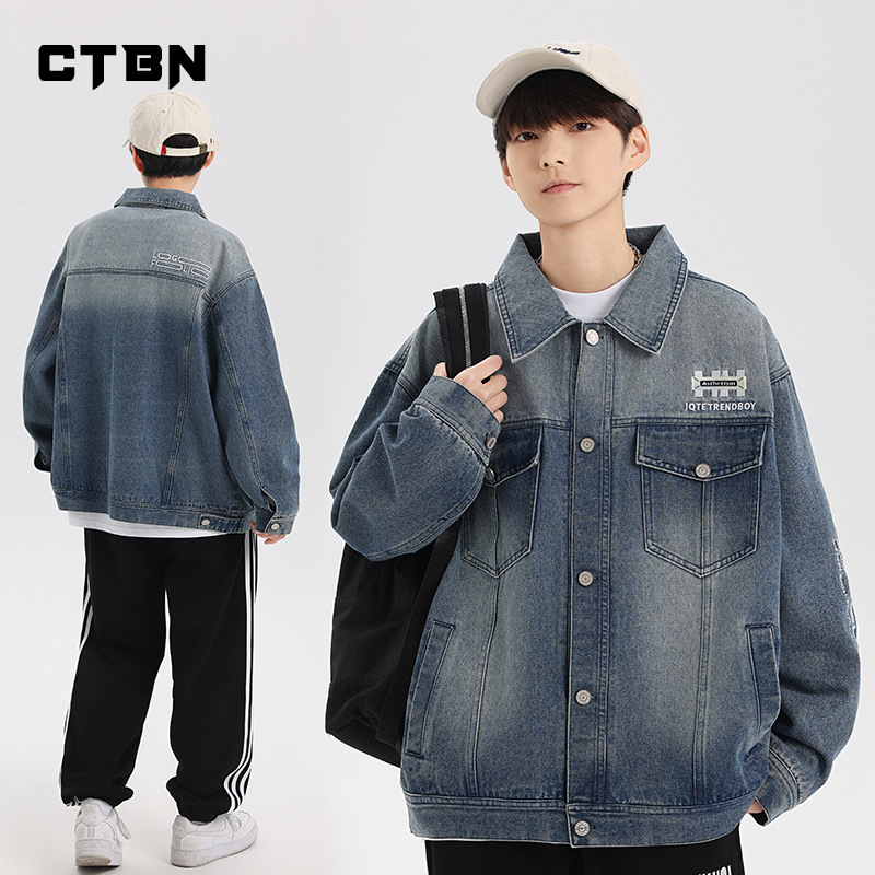 청소년 데님 재킷 소년 봄 의류 2025 새로운 봄, 가을 중학생 재킷 루즈한 데님 탑스토어 가기