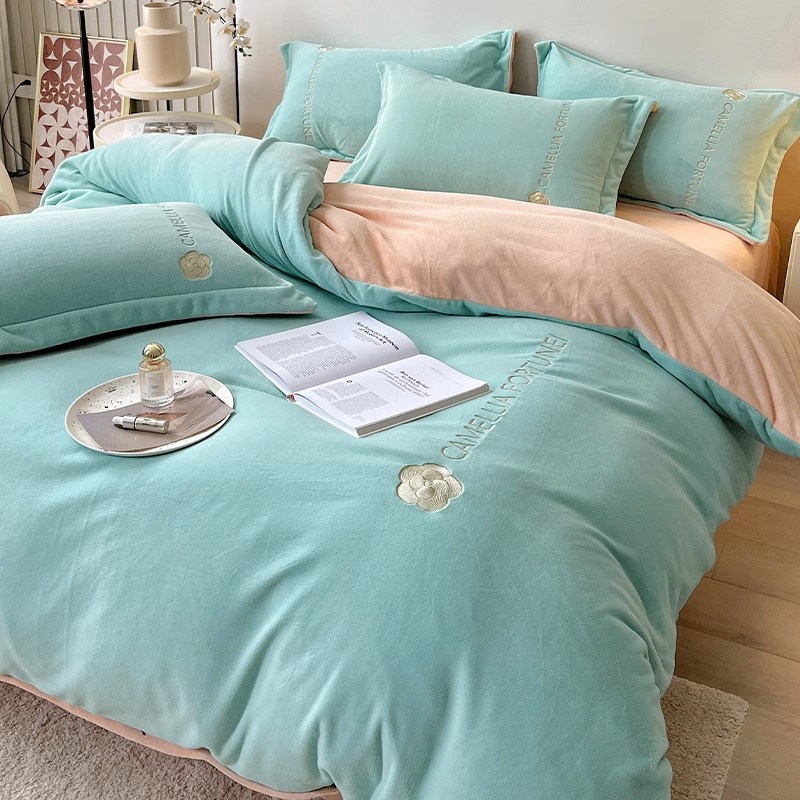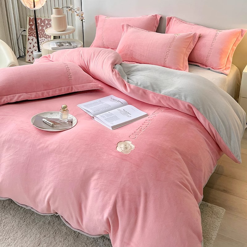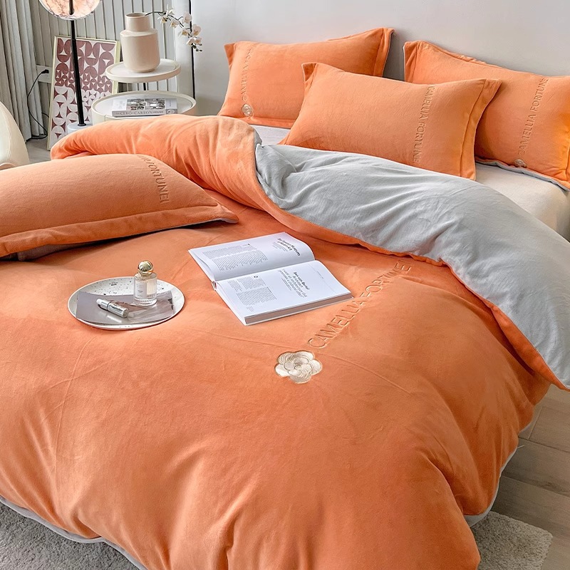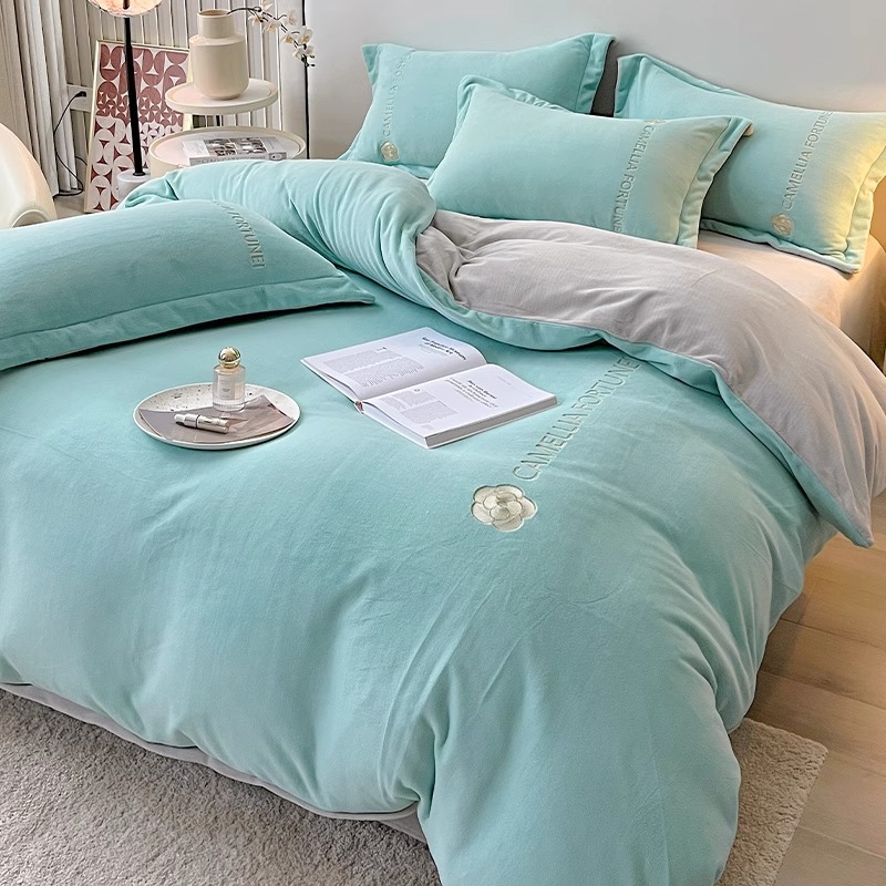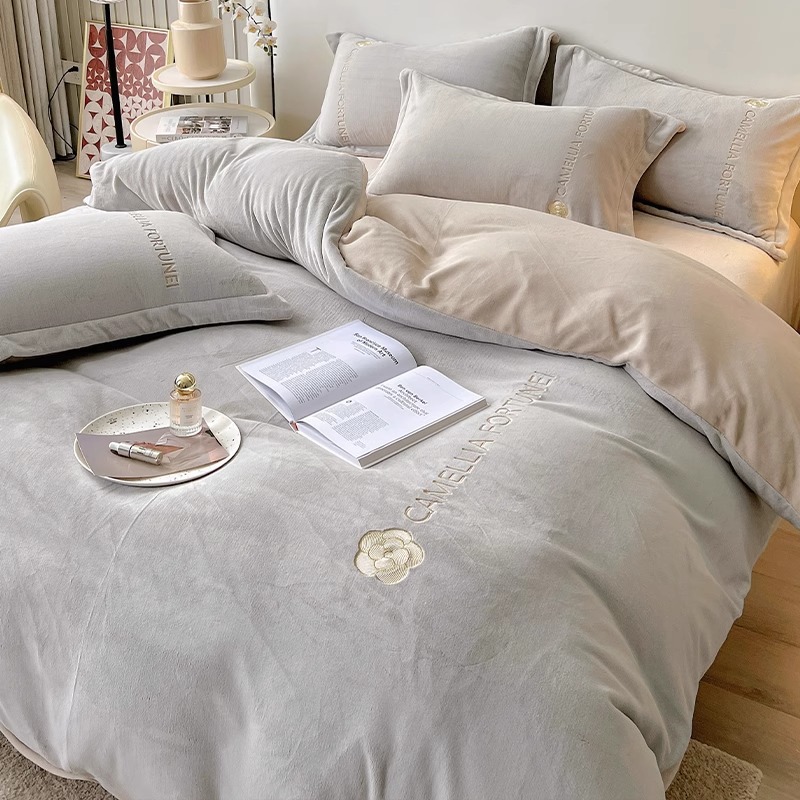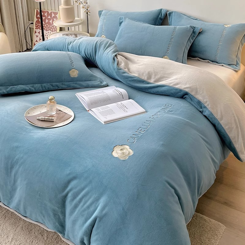 겨울용 두꺼운 플란넬 이불커버, 고급스러운 침구 세트, 플러스 벨벳 이불커버 4종 세트