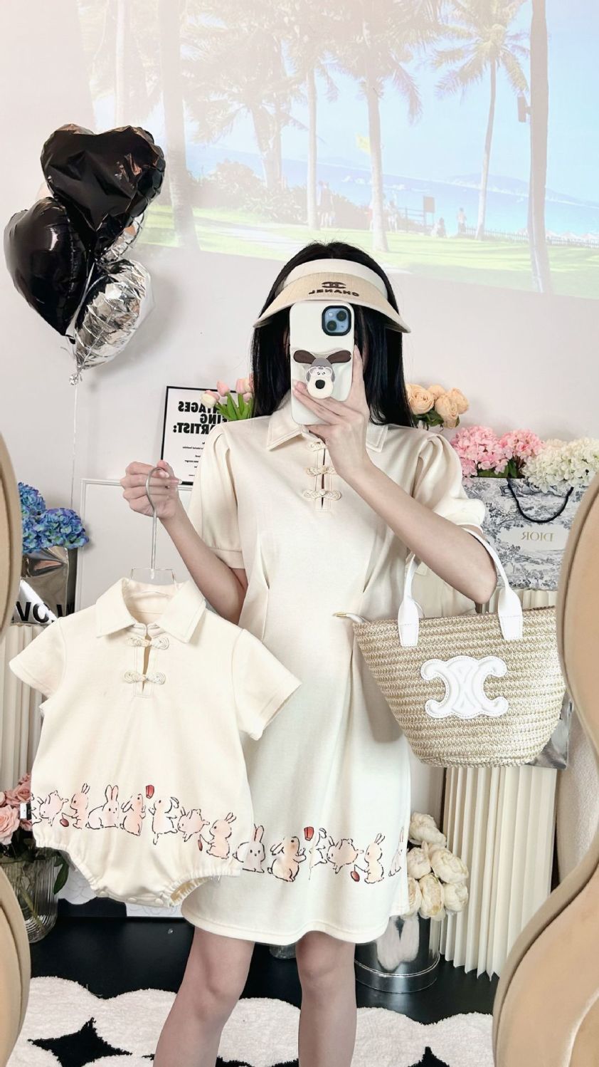 3 여름 고급 국가 스타일 한푸 아기 엄마와 딸 폴로 셔츠 원피스 가족을위한 다른 부모 자식 복장스토어 가기