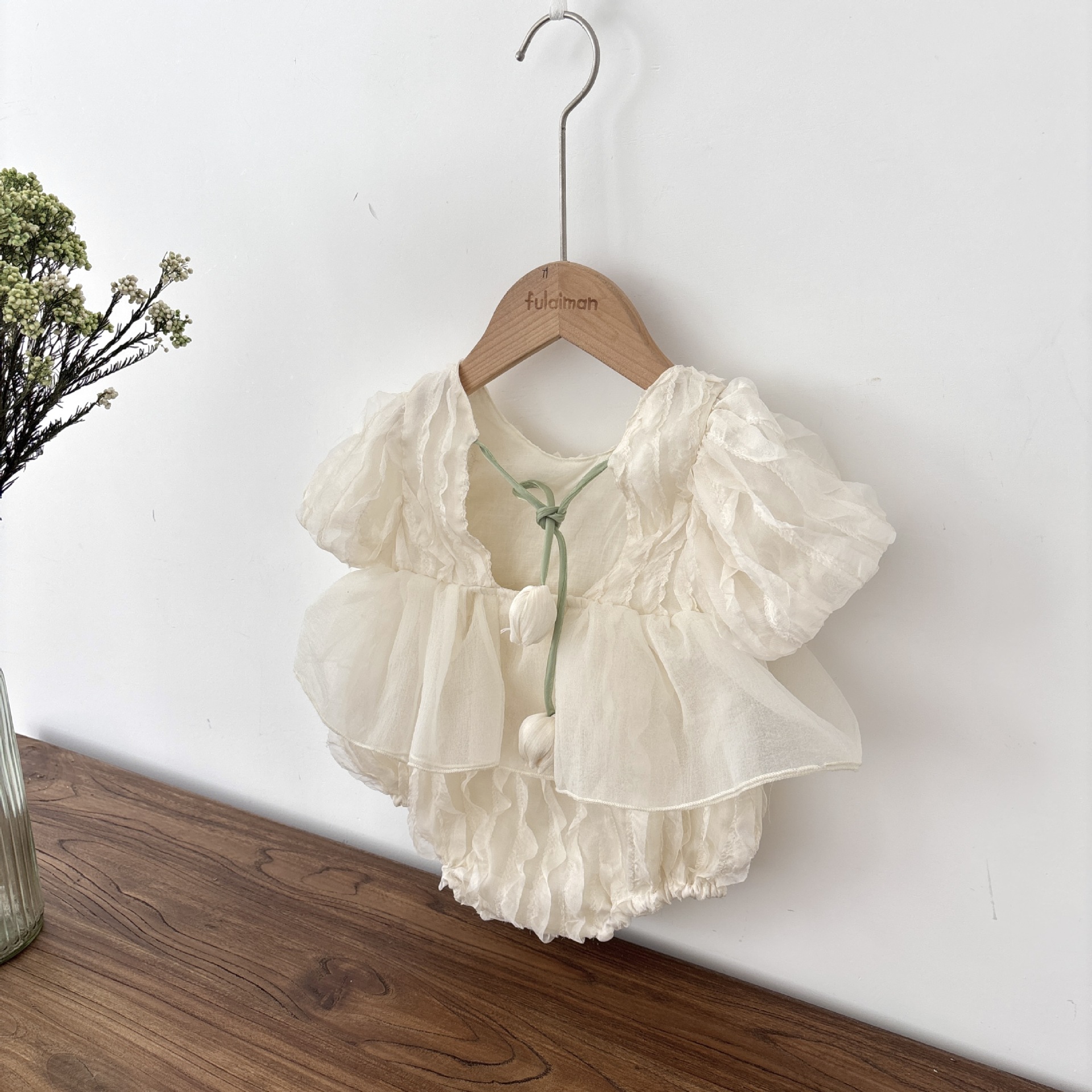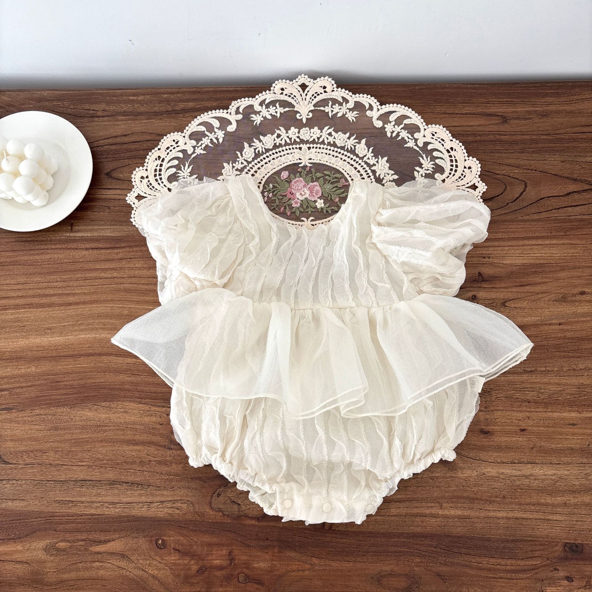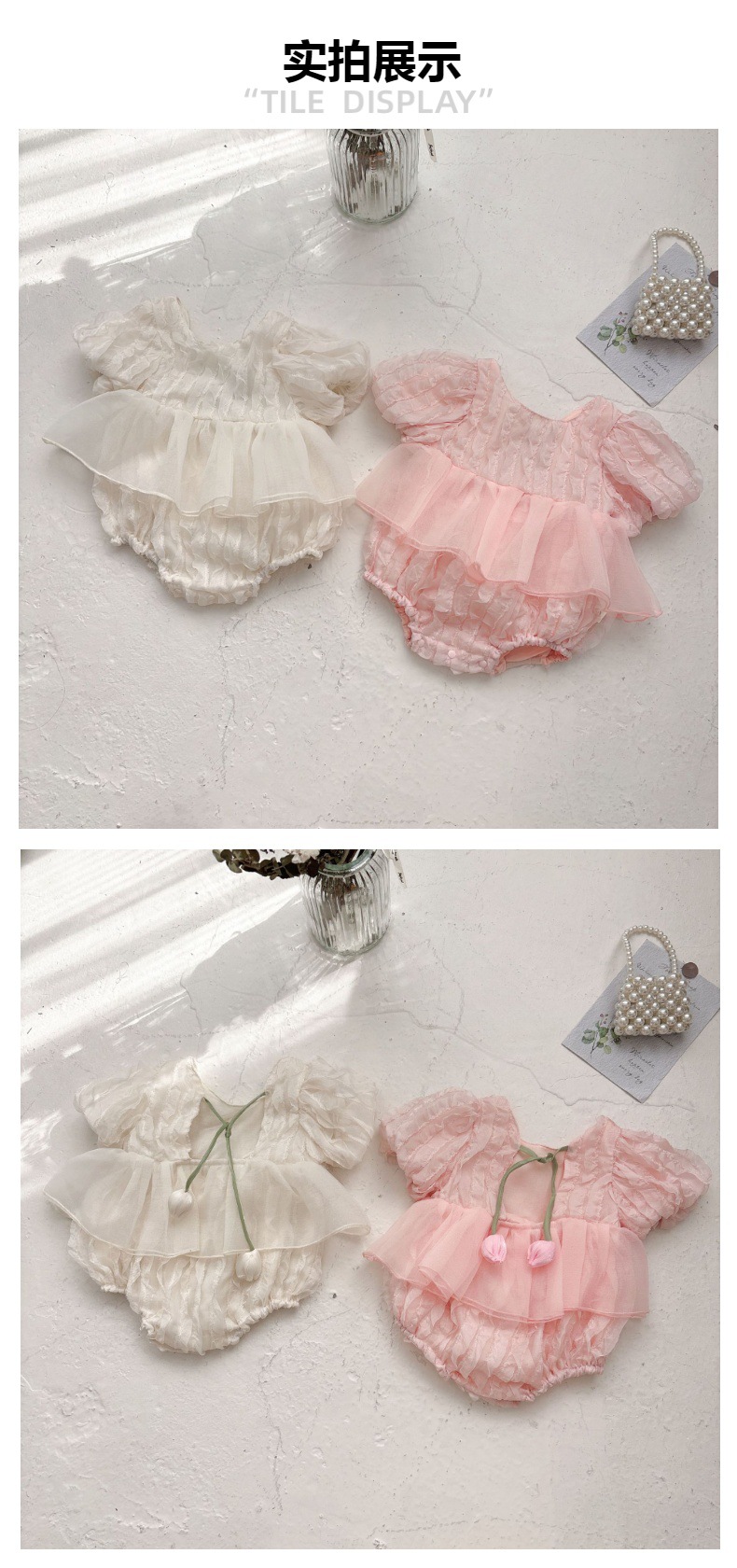 여름 새로운 아기 소녀 달콤한 퍼프 소매 반팔 점프 수트 아기 스타일러스 튤립 백리스 보름달 옷
