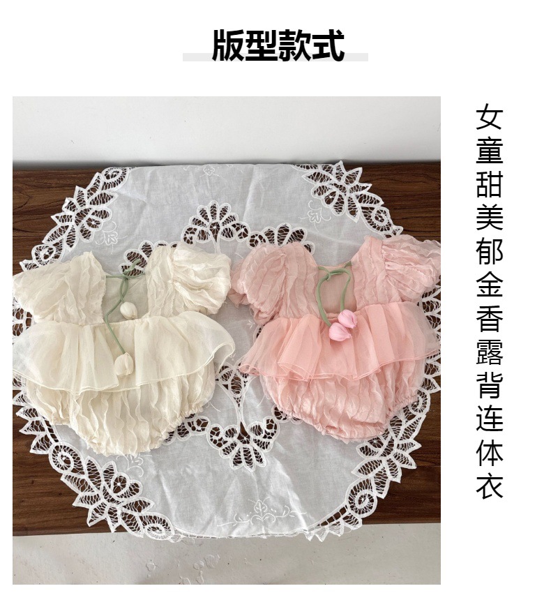 여름 새로운 아기 소녀 달콤한 퍼프 소매 반팔 점프 수트 아기 스타일러스 튤립 백리스 보름달 옷스토어 가기