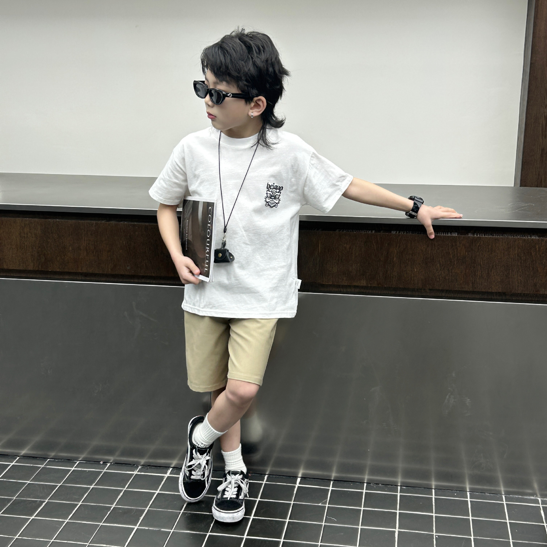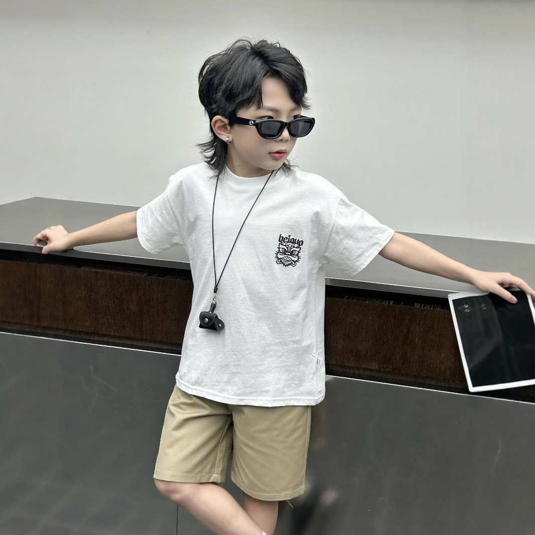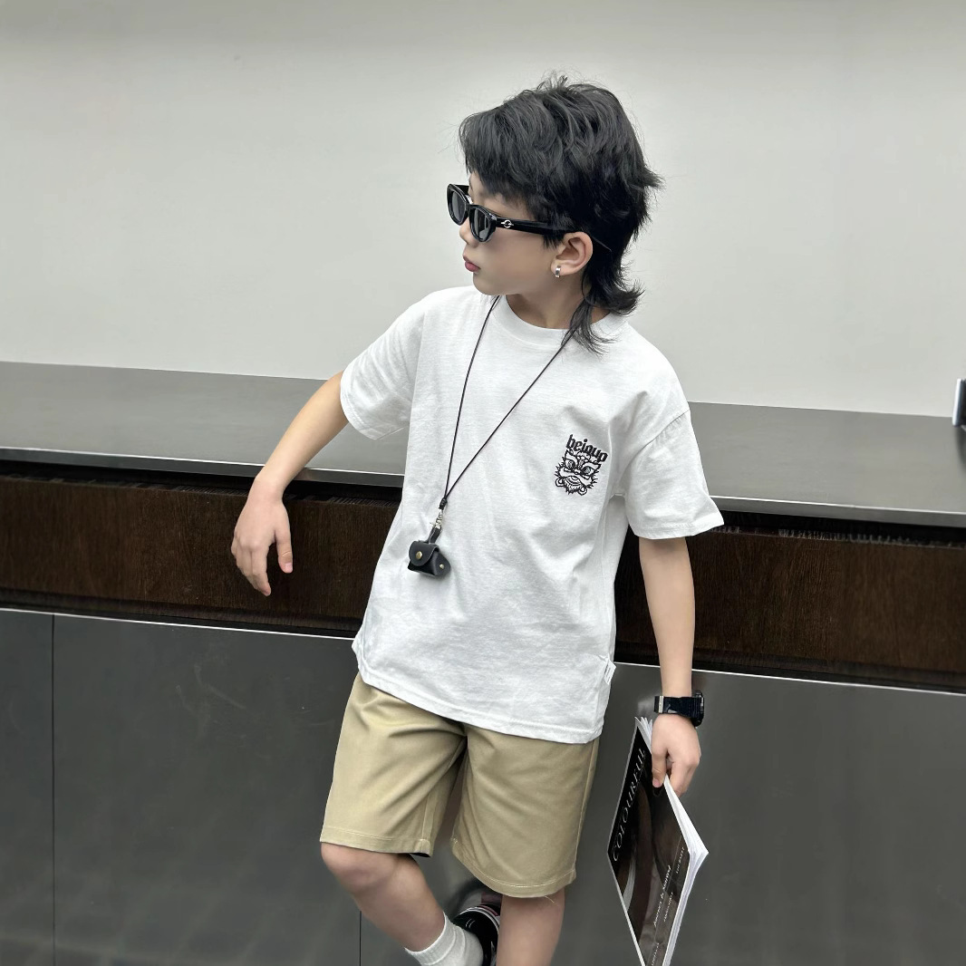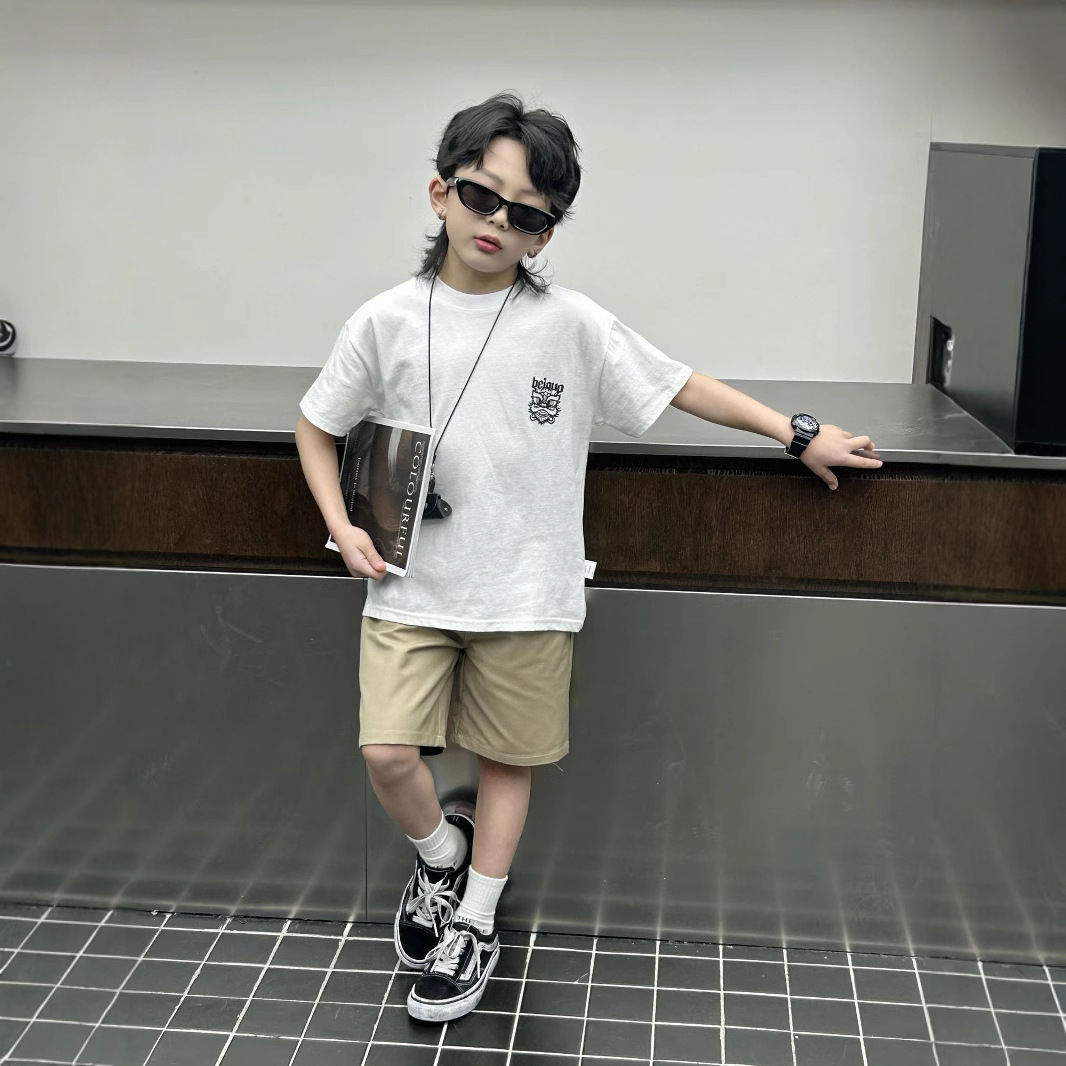 소년 여름 착용 흰색 반팔 티셔츠 2024 새로운 아동복 탑 어린이 반소매 티셔츠 트렌디스토어 가기