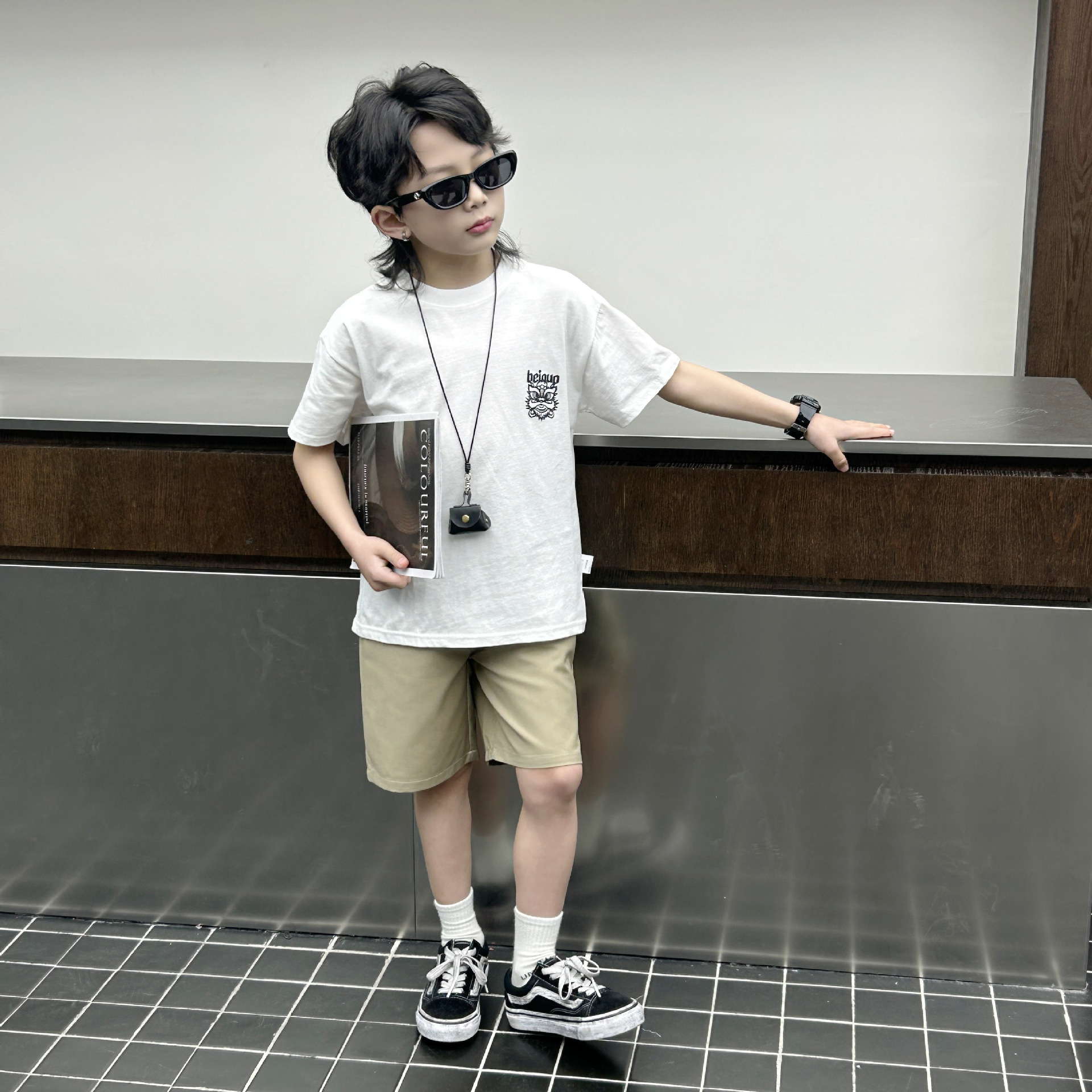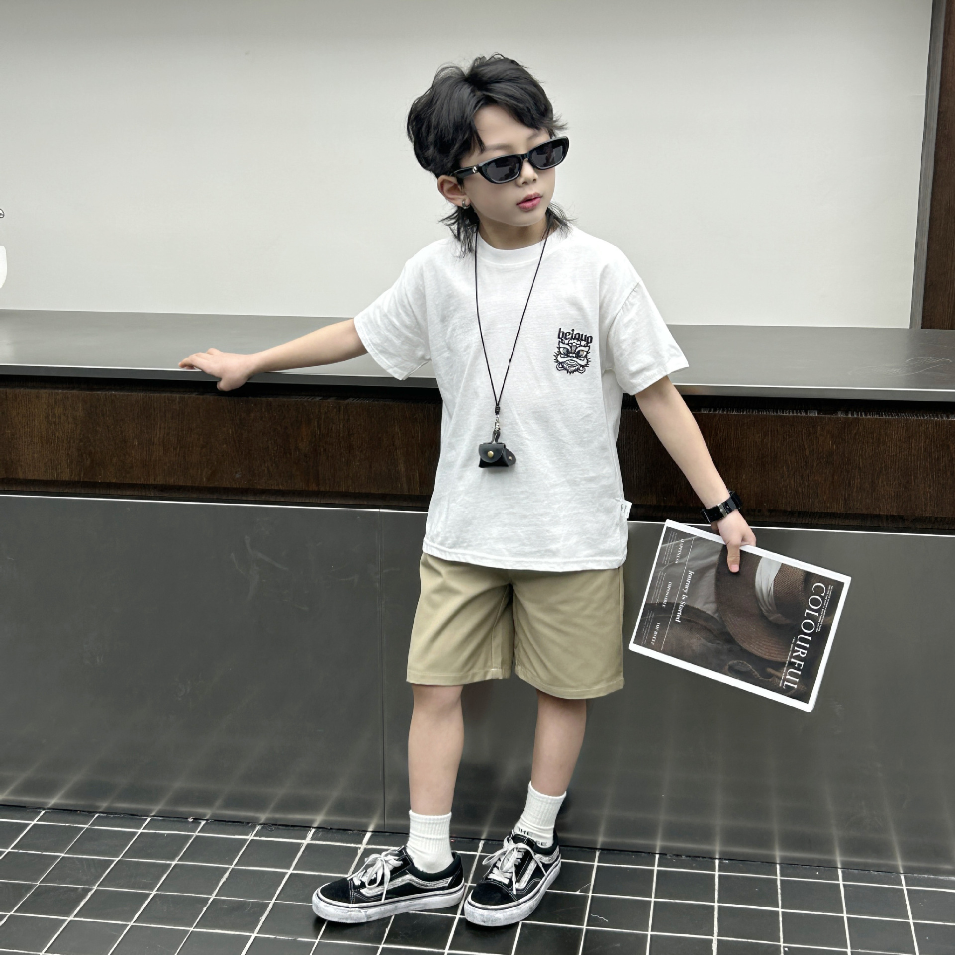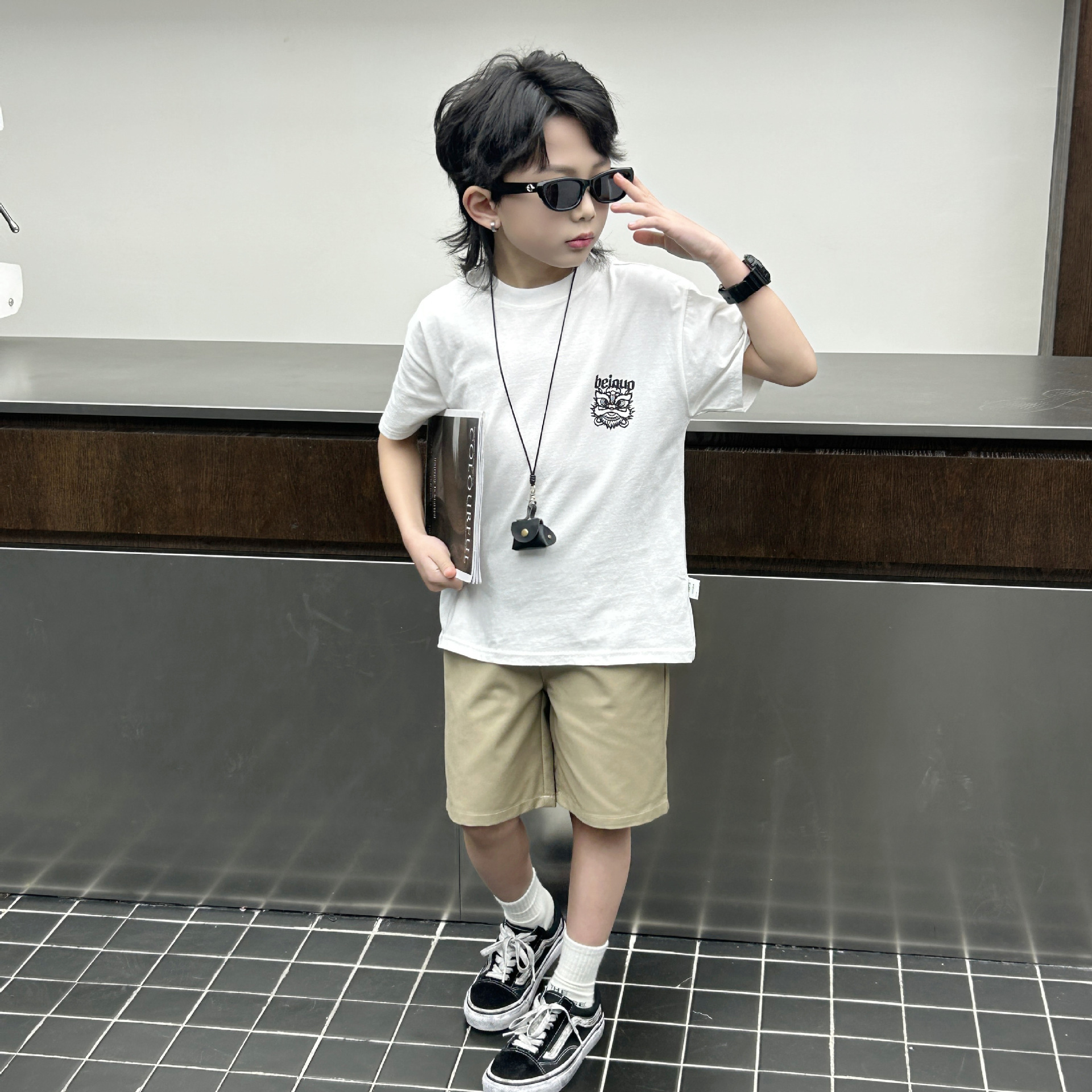 소년 여름 착용 흰색 반팔 티셔츠 2024 새로운 아동복 탑 어린이 반소매 티셔츠 트렌디스토어 가기