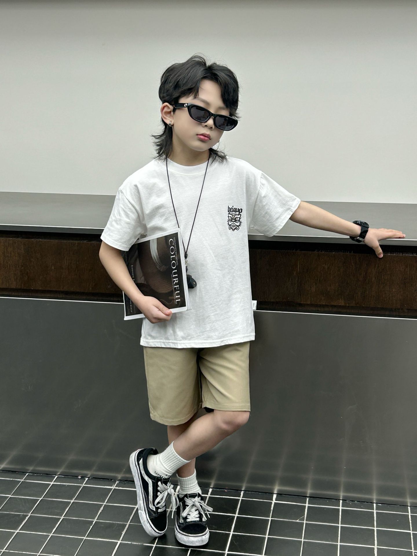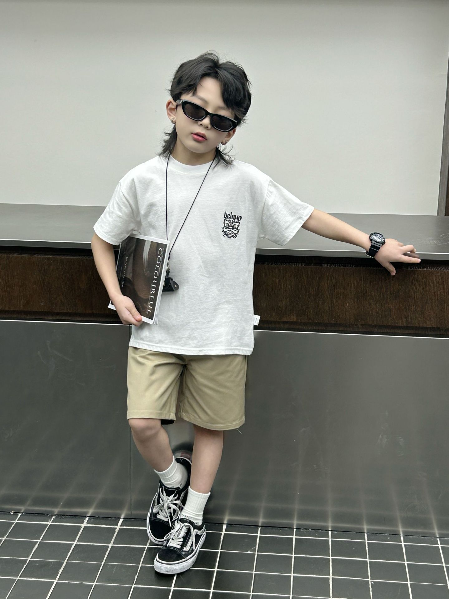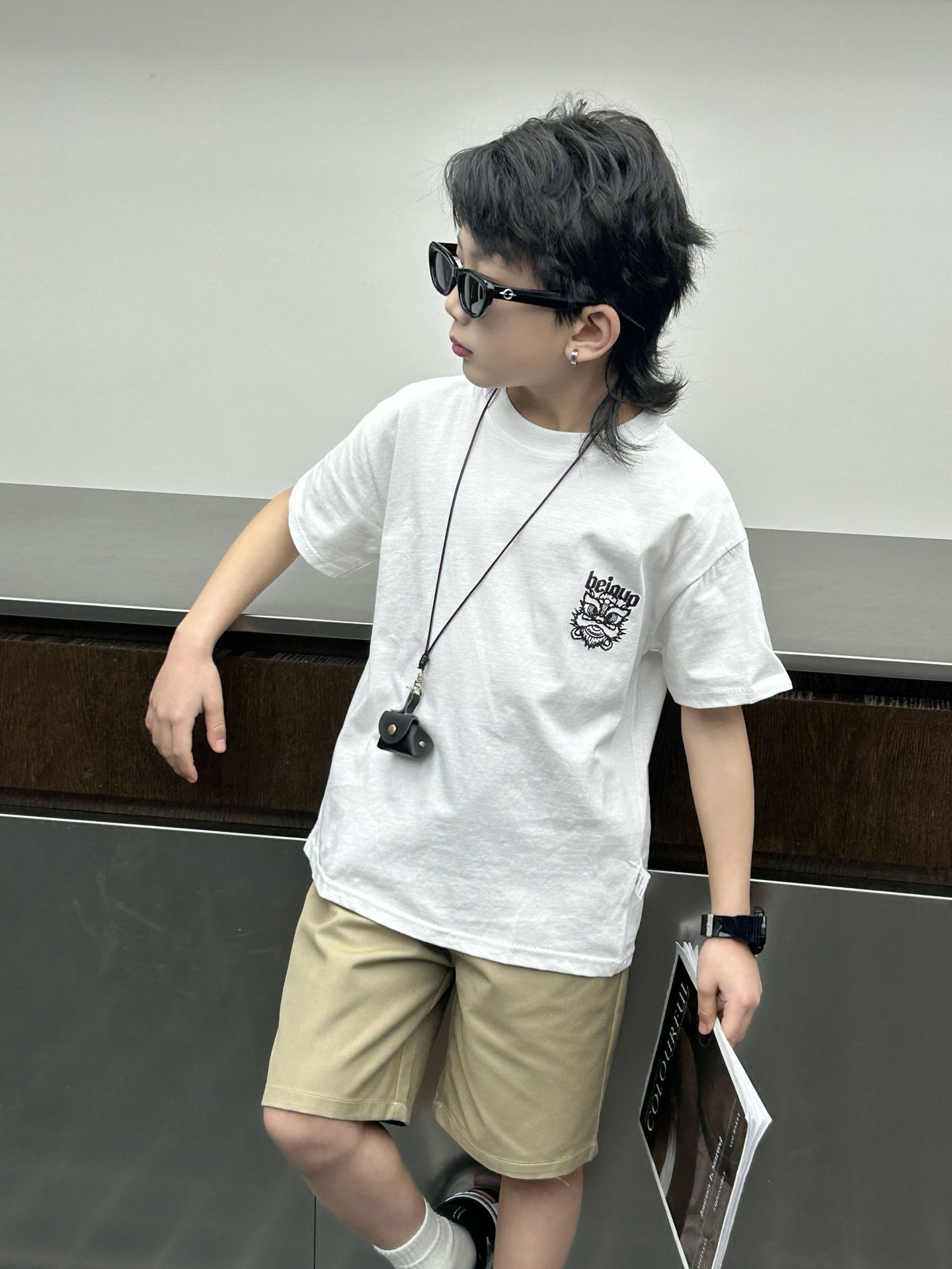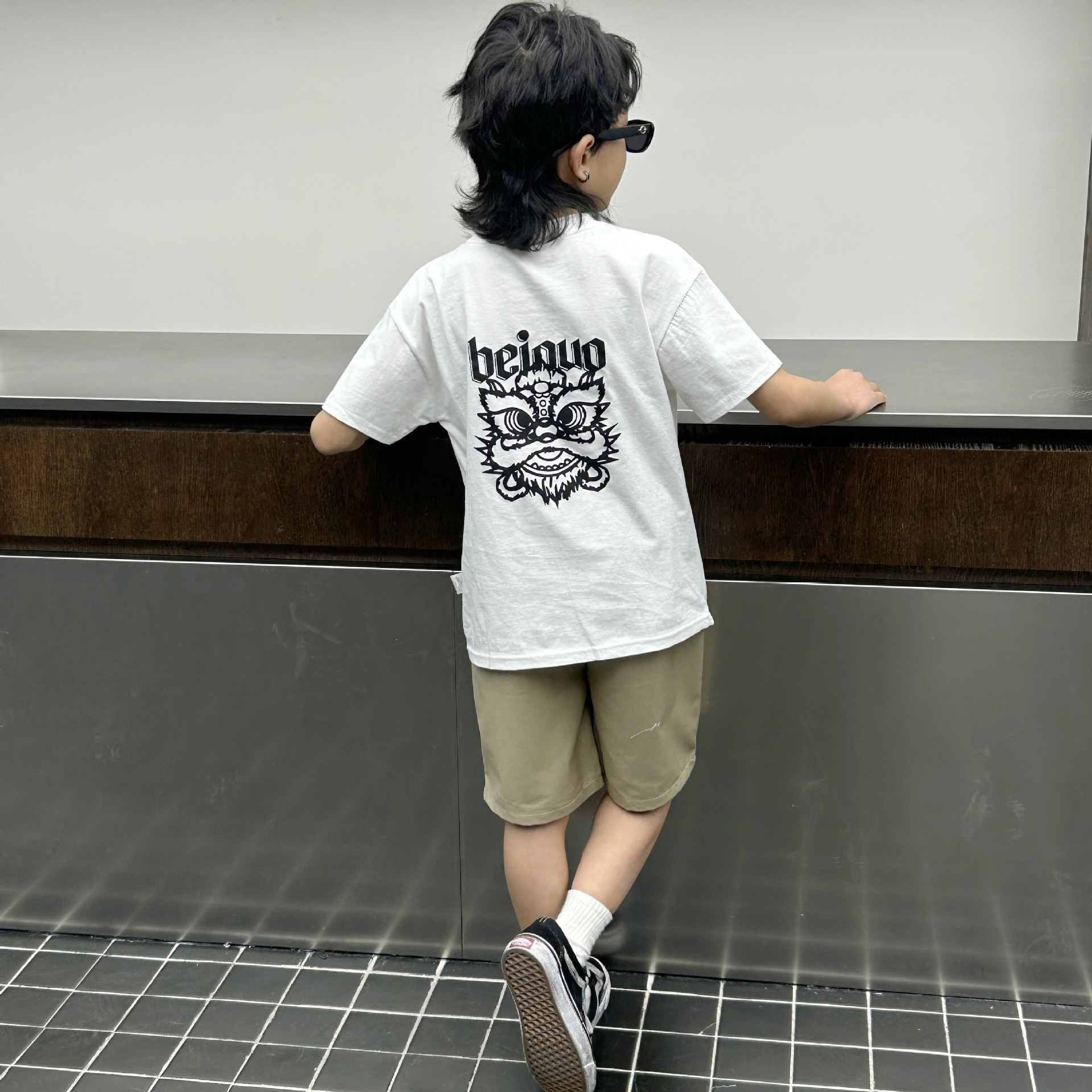 소년 여름 착용 흰색 반팔 티셔츠 2024 새로운 아동복 탑 어린이 반소매 티셔츠 트렌디스토어 가기