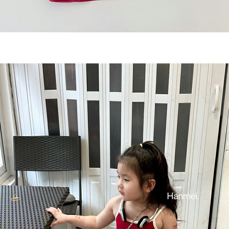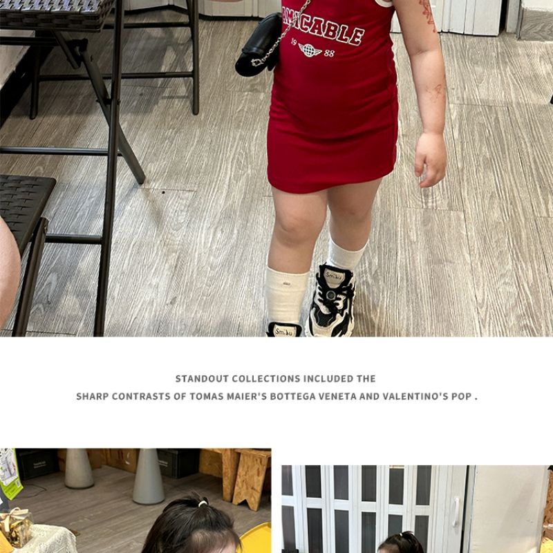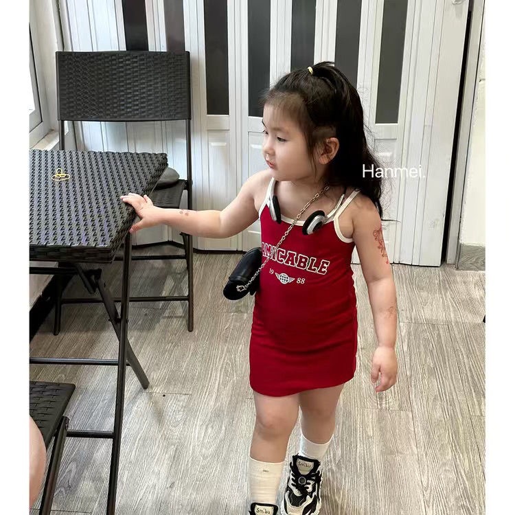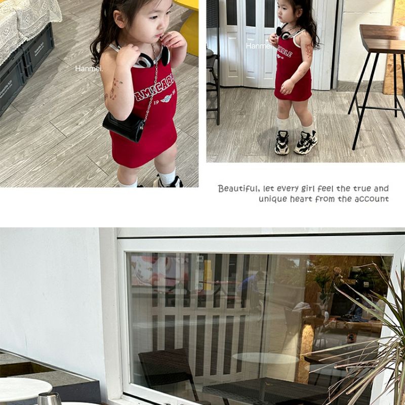 여자 여름 원피스 원피스 아기의 서양식 어린이 맞춤형 트렌디 브랜드 한국 스타일 유행 컬러 매칭 레터 조끼 슬립 스커트스토어 가기