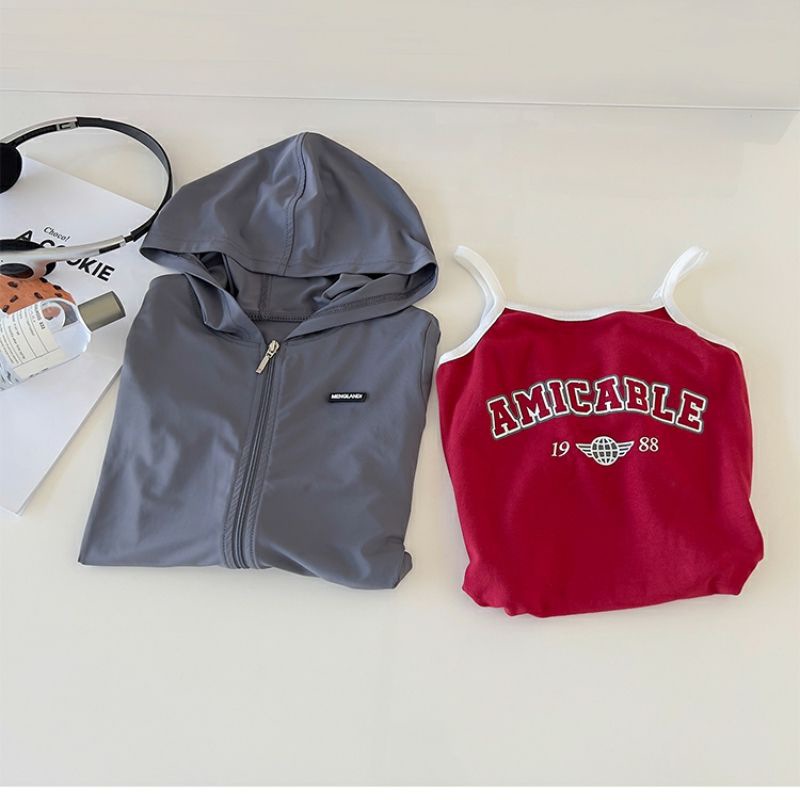 여자 여름 원피스 원피스 아기의 서양식 어린이 맞춤형 트렌디 브랜드 한국 스타일 유행 컬러 매칭 레터 조끼 슬립 스커트