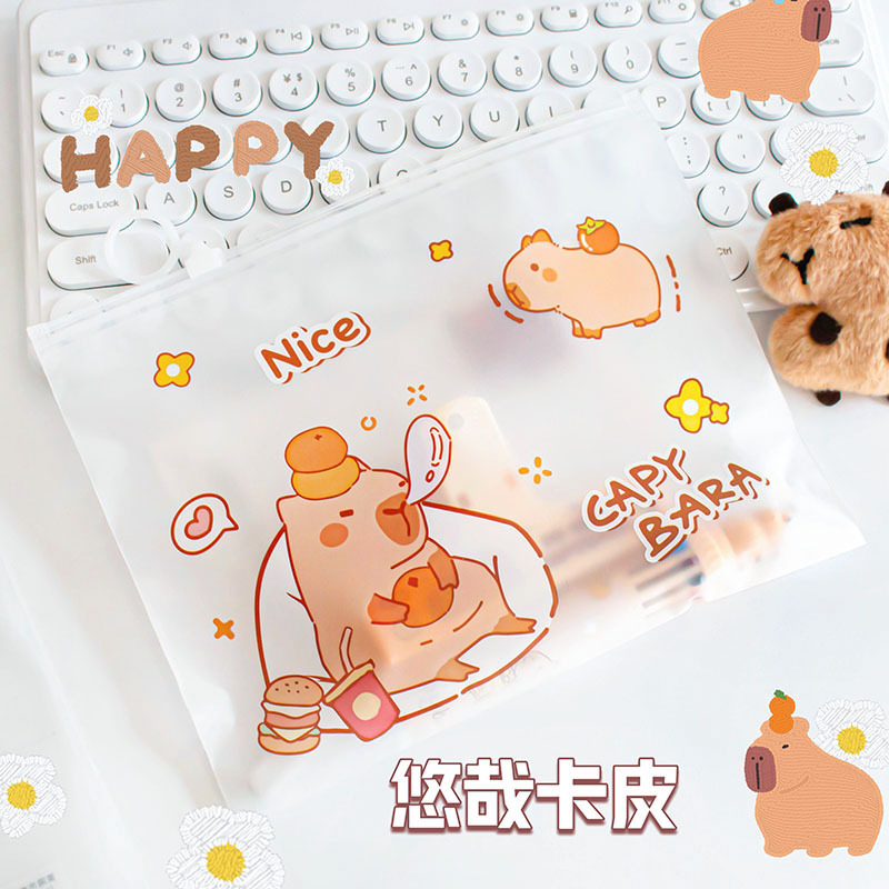 귀여운 만화 가장자리 파일 가방 학생 문구 큰 용량 프로스트 투명 파일 가방 소재 저장 가방스토어 가기