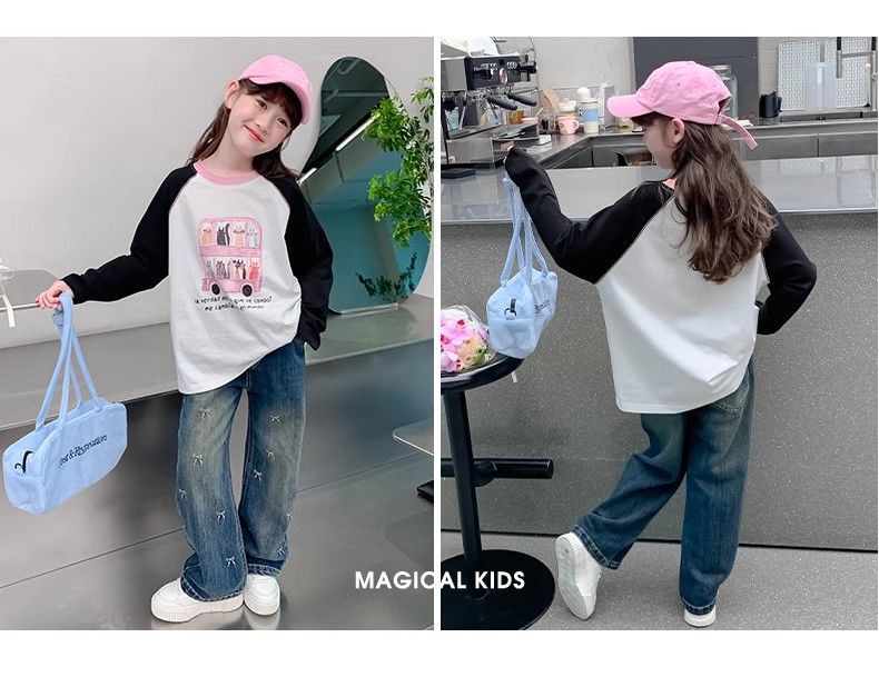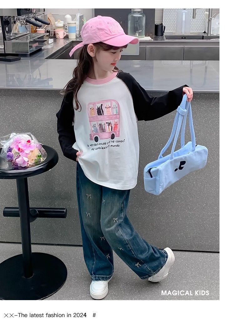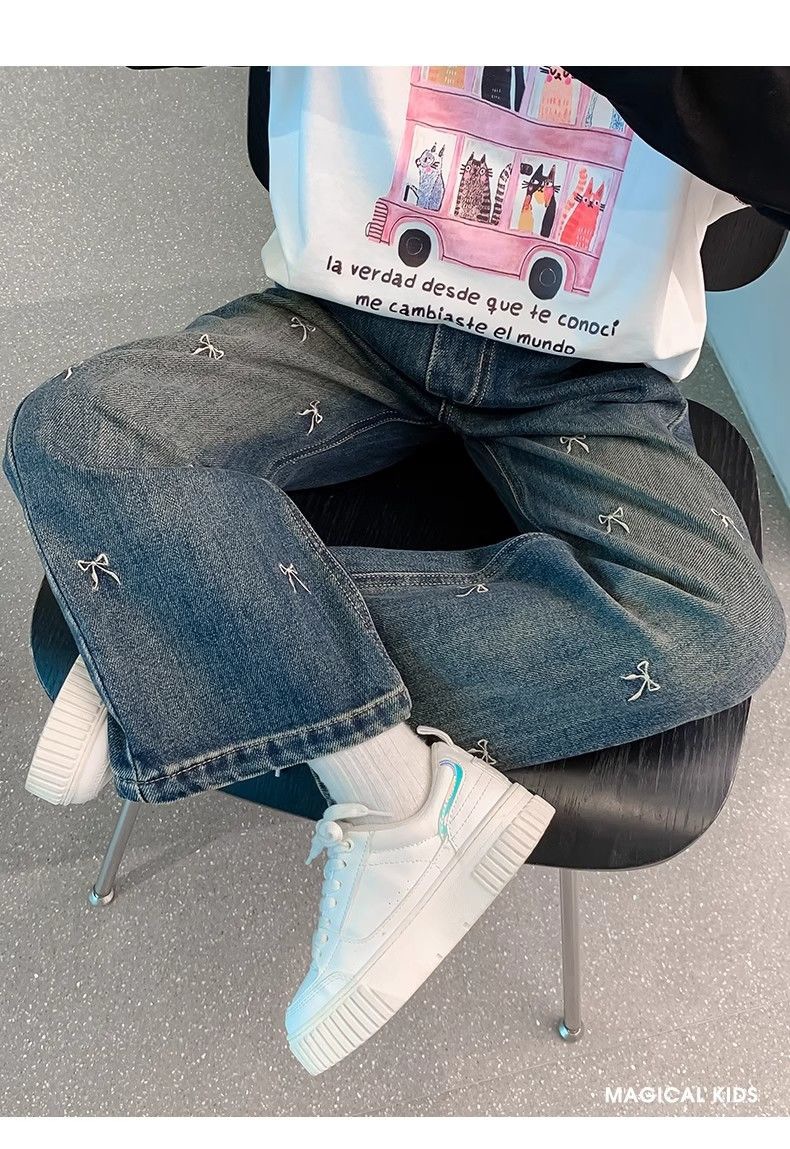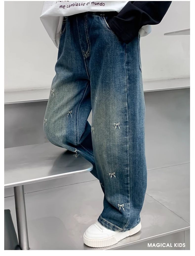 봄과 가을 소녀 청바지 아기의 서양식 어린이 성격 유행 브랜드 한국 스타일 활 유행 인터넷 기념 넓은 다리 바지스토어 가기