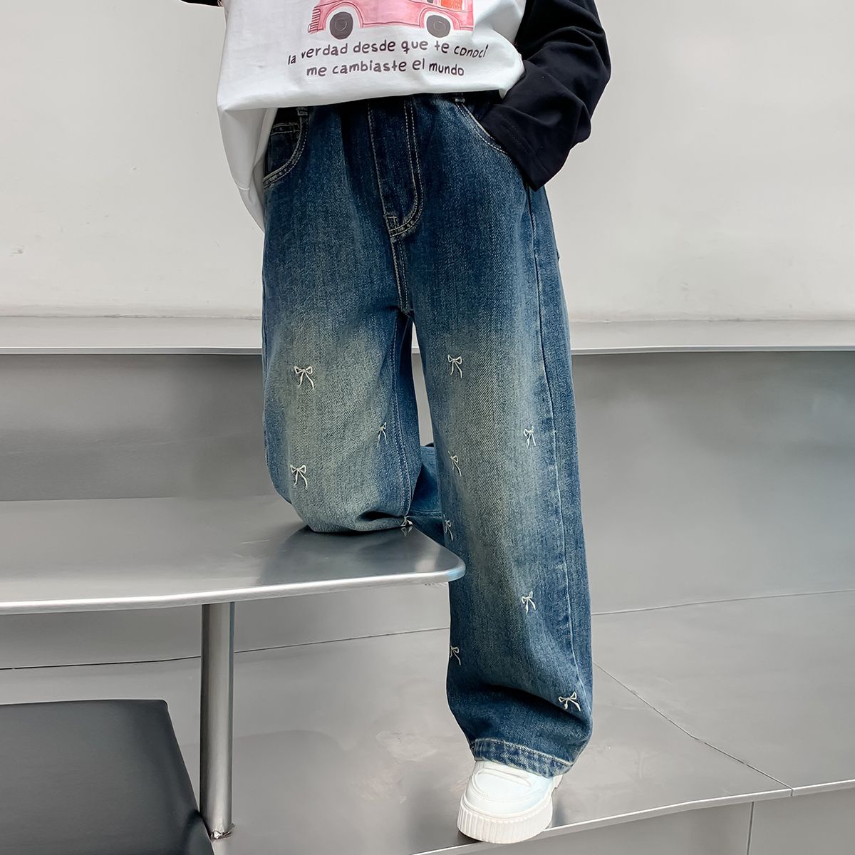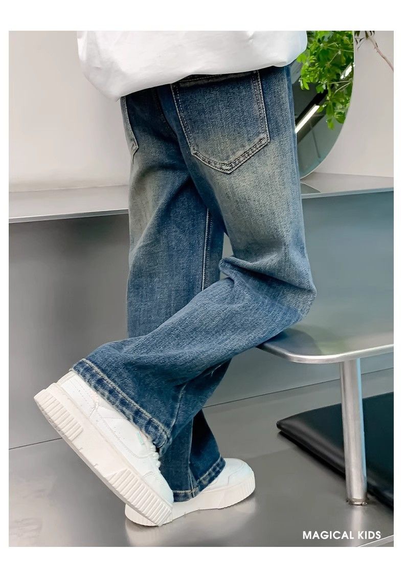 봄과 가을 소녀 청바지 아기의 서양식 어린이 성격 유행 브랜드 한국 스타일 활 유행 인터넷 기념 넓은 다리 바지