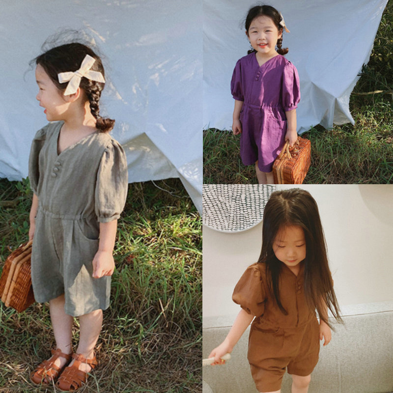 女童连身衣韩版简约连体裤短裤25夏装新款外贸童装代发3-8岁스토어 가기
