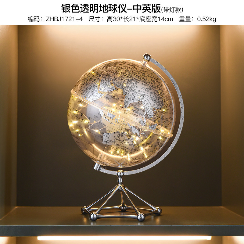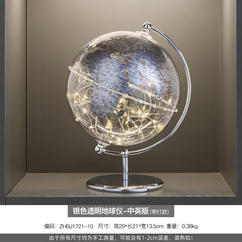 • 은색 투명 지구본 - 중국어 및 영어 버전(조명 포함)