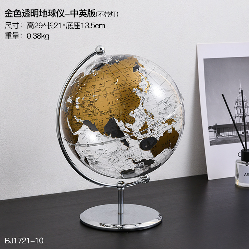 • 황금색 투명 지구본 - 중국어 및 영어 버전(조명 없음)