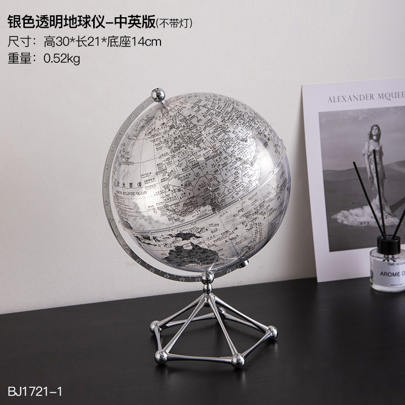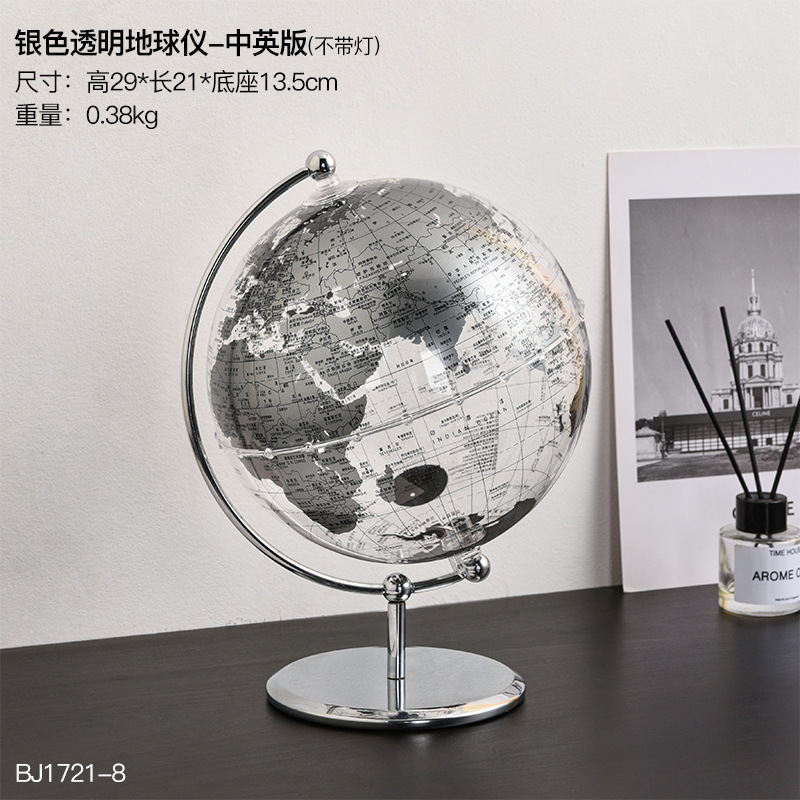 • 은색 투명 지구본 - 중국어 및 영어 버전(조명 없음)