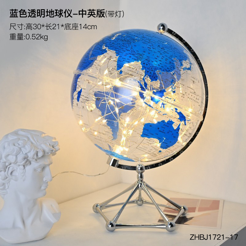 • 투명한 지구본 - 파란색 중국어 및 영어 버전(조명 포함)