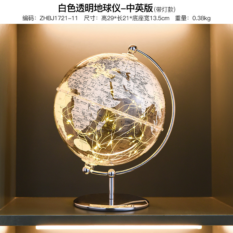 • 흰색 투명 지구본 - 중국어 및 영어 버전(조명 포함)