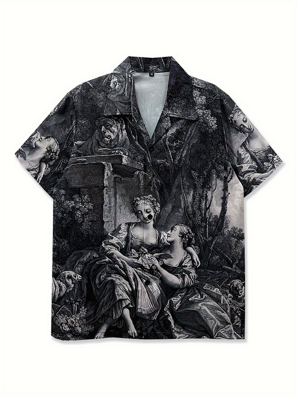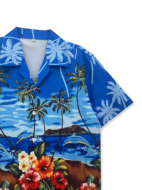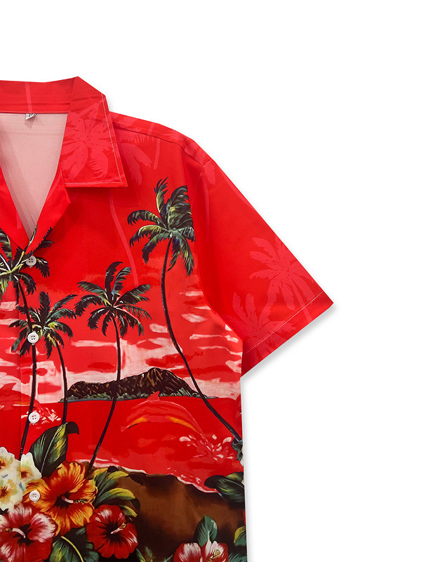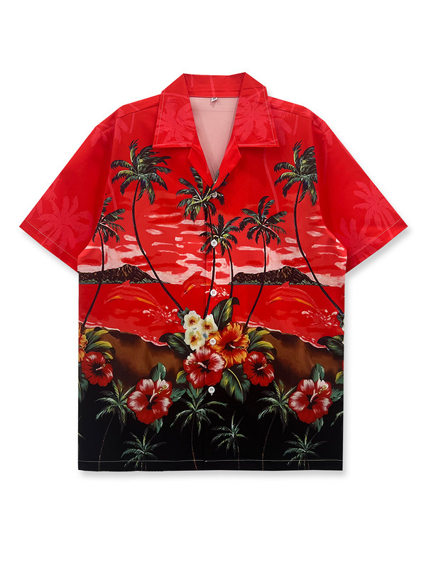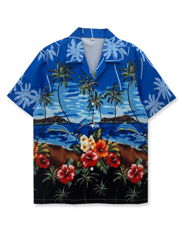 국경 대외 무역 유럽 코드 유행 브랜드 유럽과 미국의 반팔 프린트 셔츠 남성 해변 느슨한 다목적 캐주얼 커플 셔츠 여성