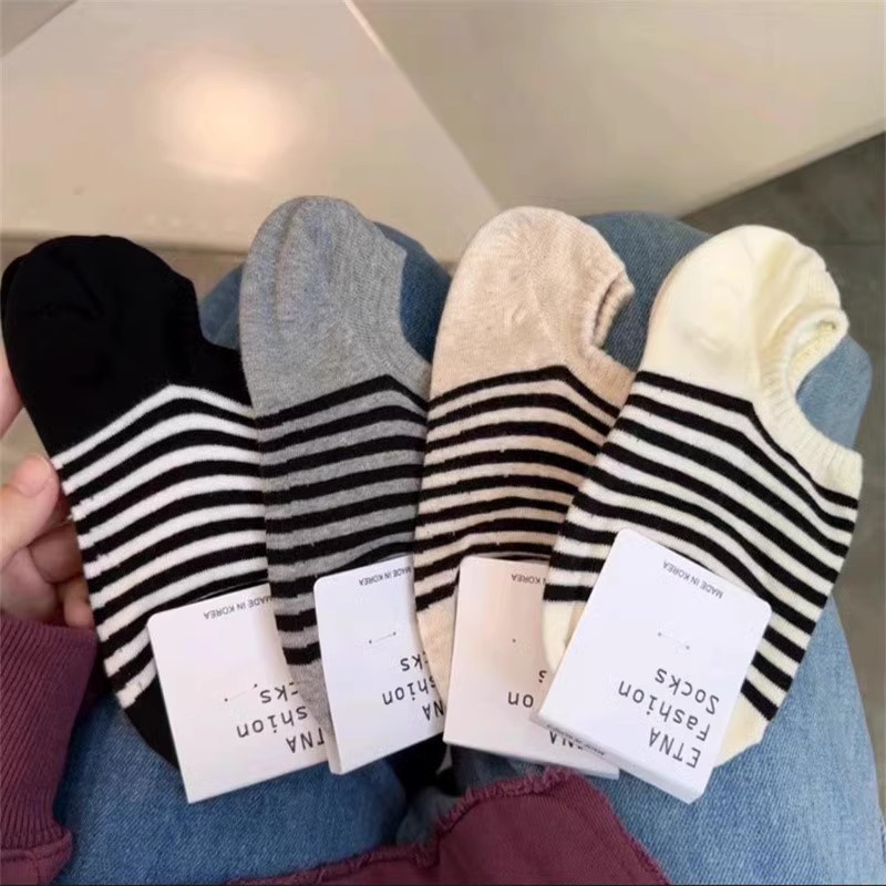 재고 한국 동대문 여름 보트 양말 ETNA 대비 색 줄무늬 얕은 입 면 실리콘 안티 드롭 힐 보이지 않는 여성용 양말스토어 가기