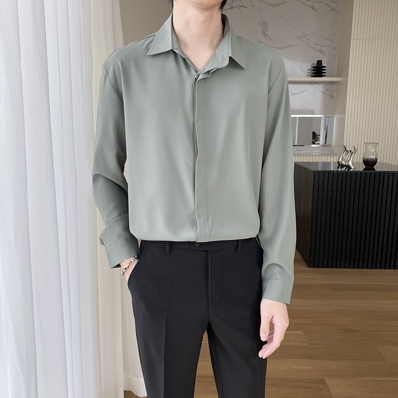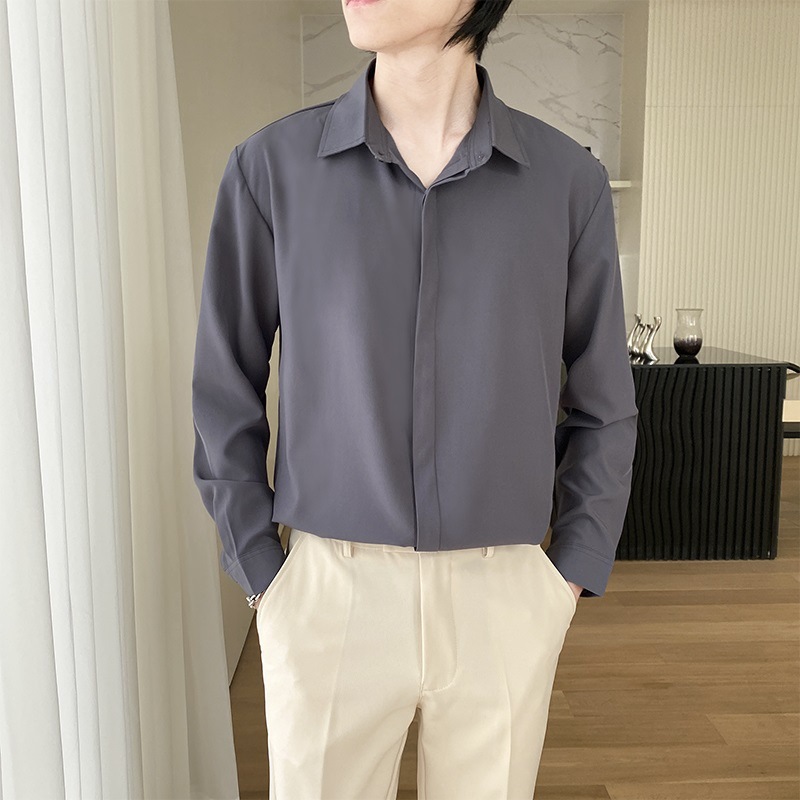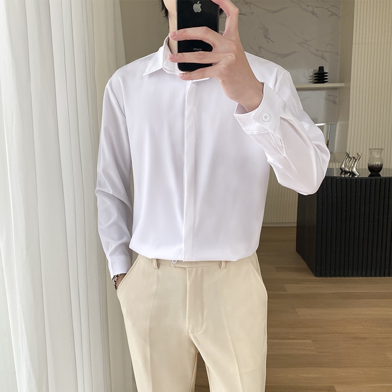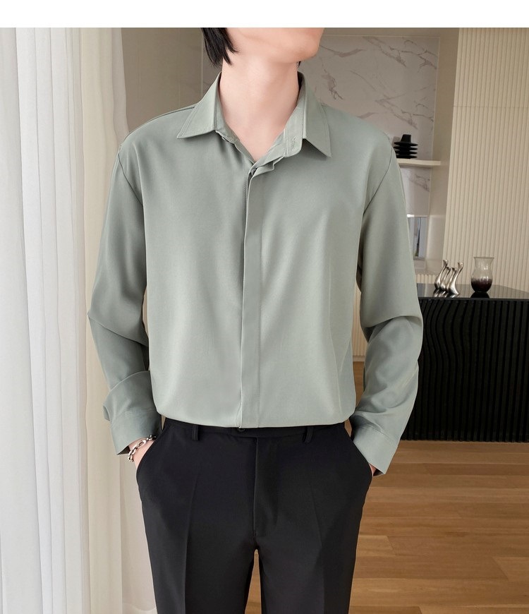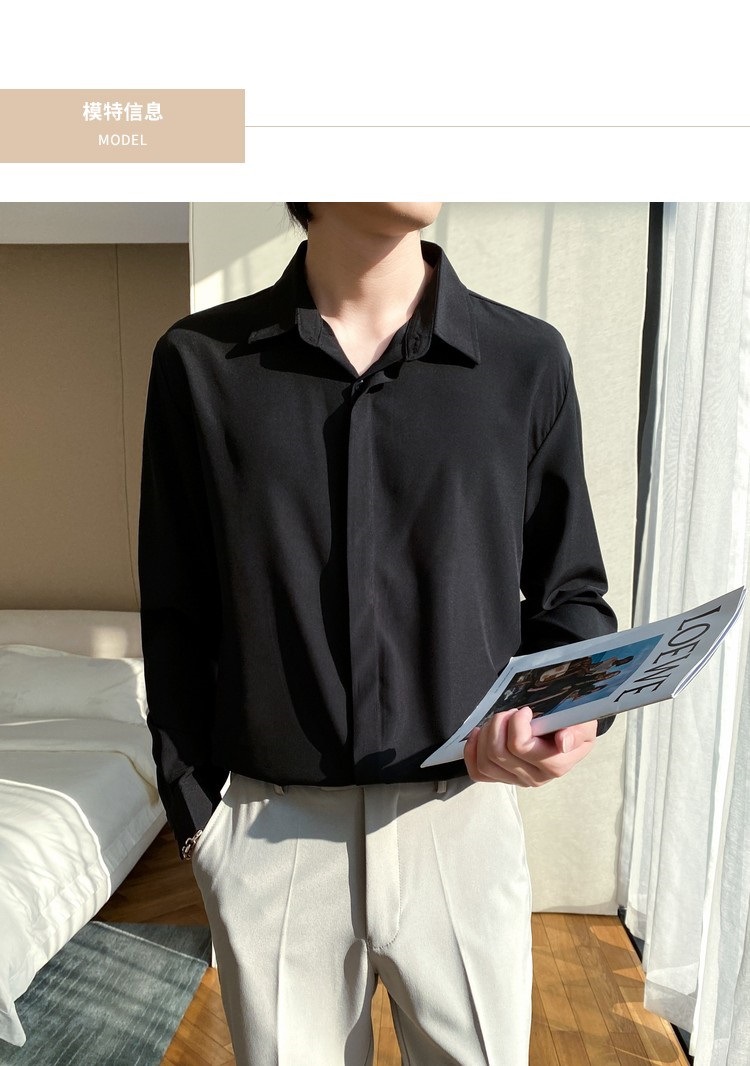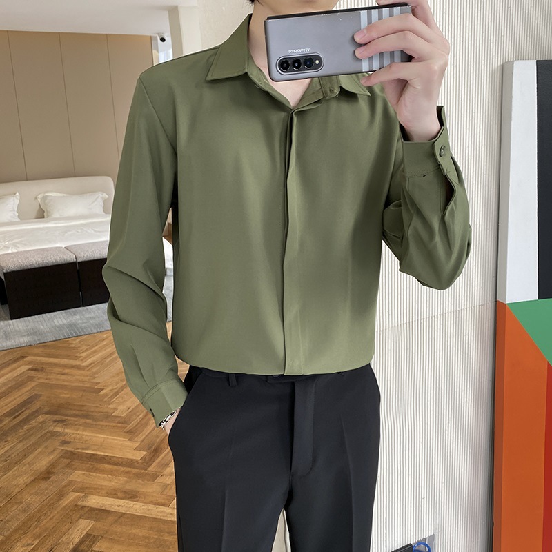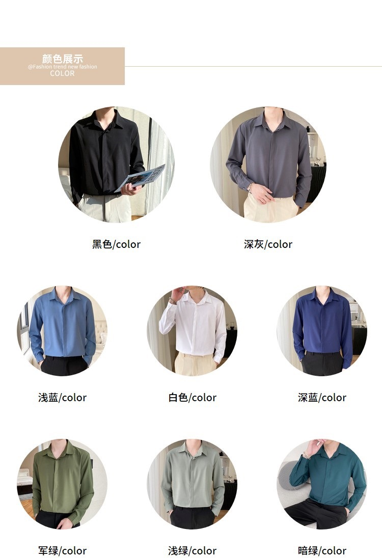 봄과 가을 긴팔 셔츠 남성용 트렌디한 Ins 비 다림질 방지 주름 담그는 시원한 바람 빛 성숙한 캐주얼 셔츠 하이 엔드 셔츠스토어 가기