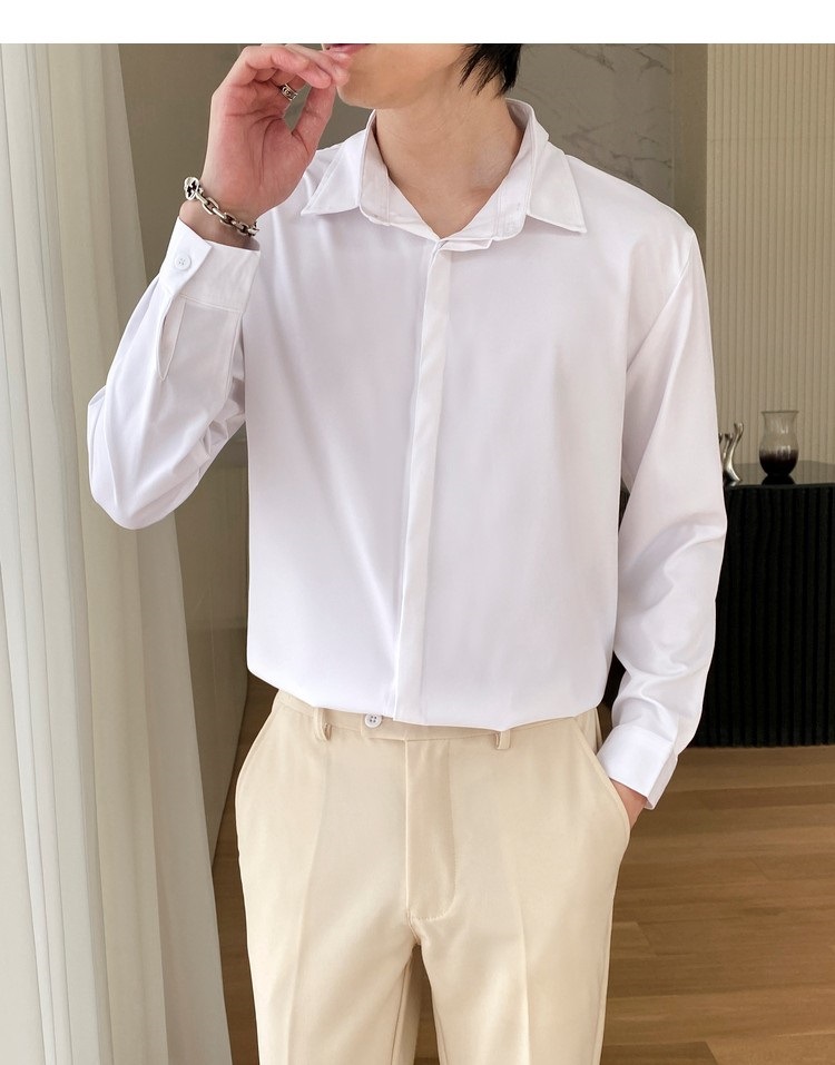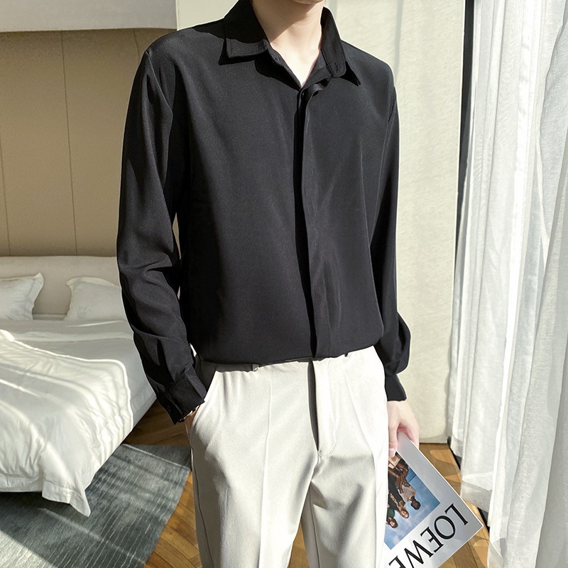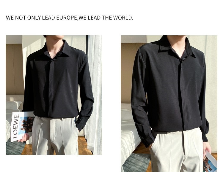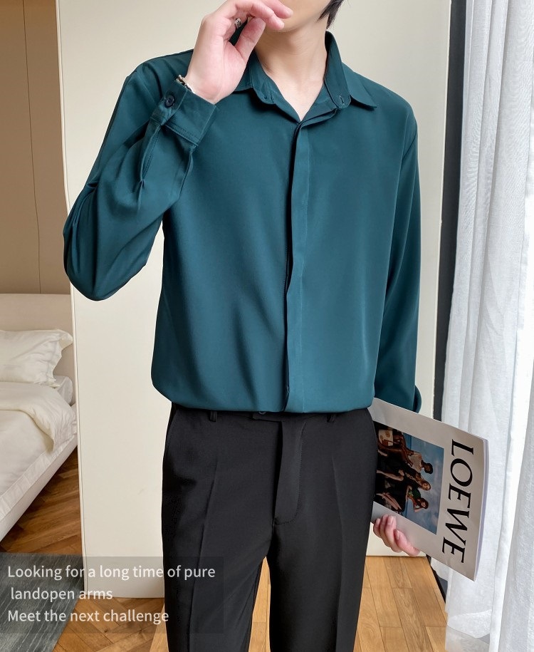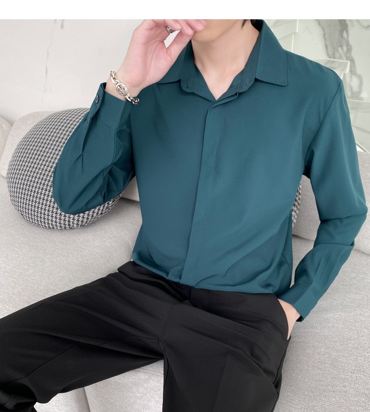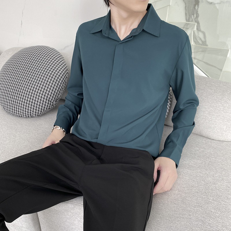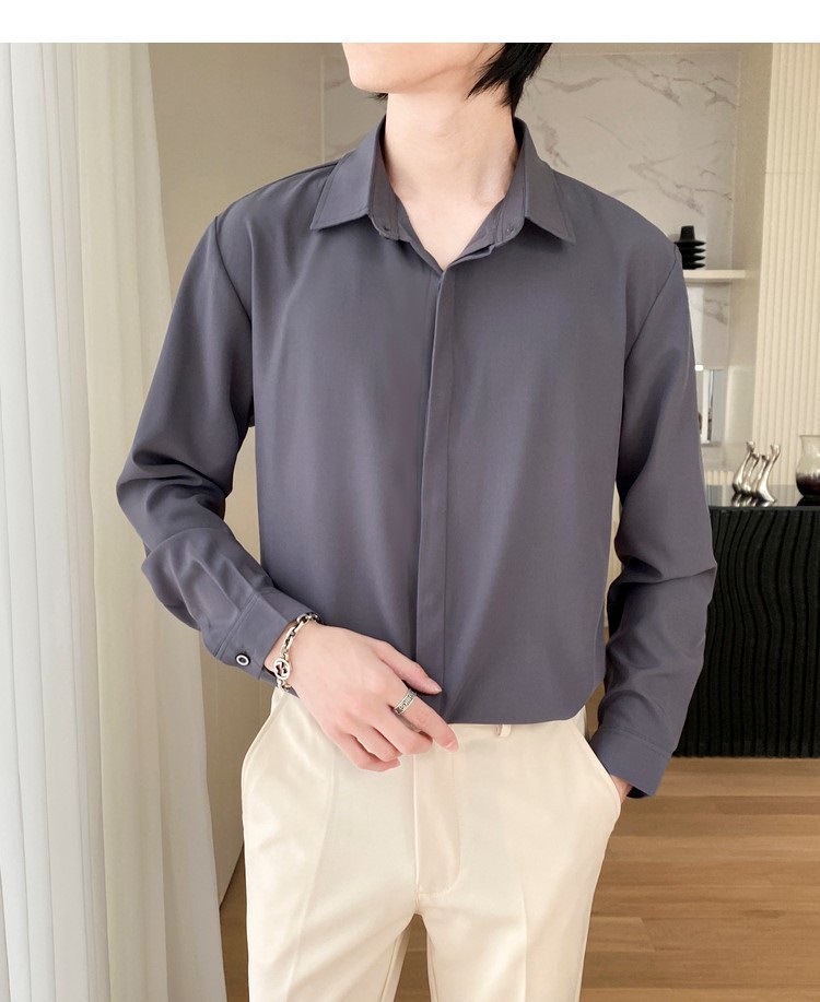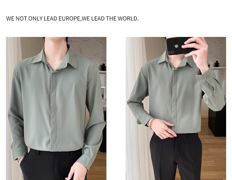 봄과 가을 긴팔 셔츠 남성용 트렌디한 Ins 비 다림질 방지 주름 담그는 시원한 바람 빛 성숙한 캐주얼 셔츠 하이 엔드 셔츠스토어 가기