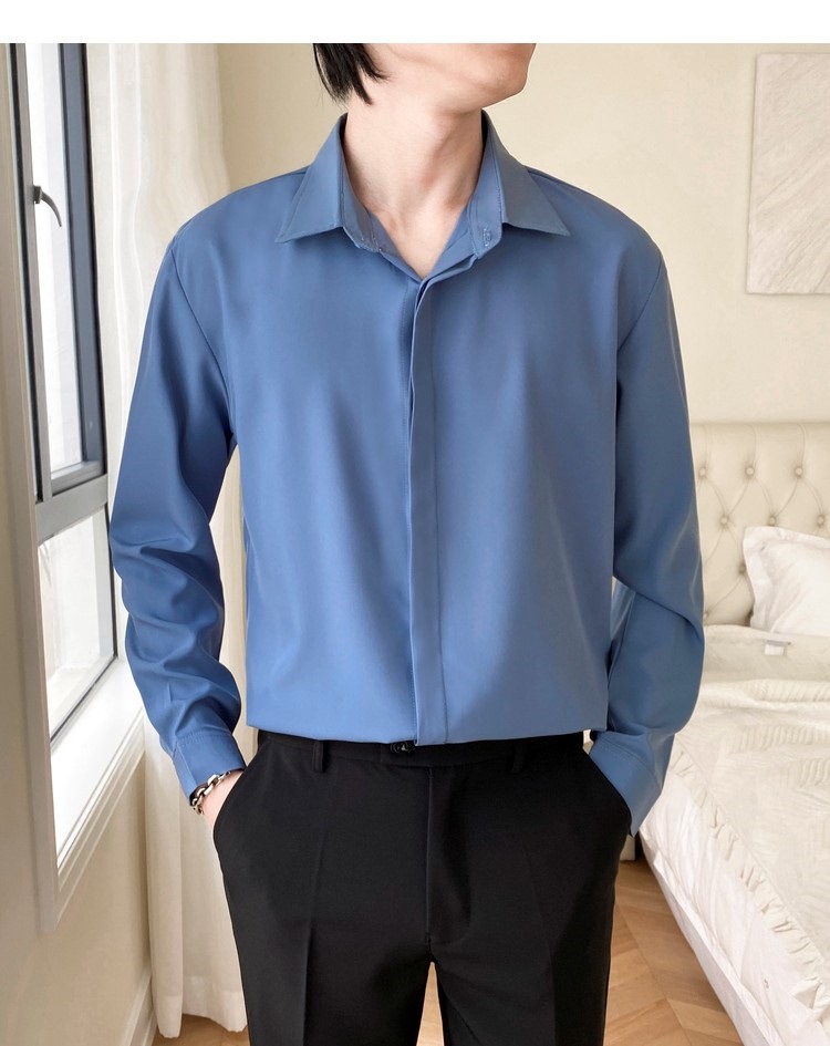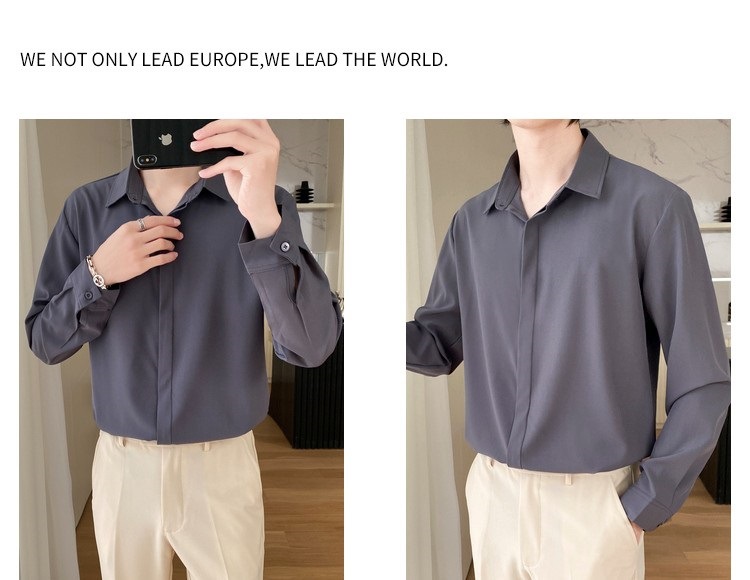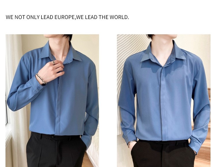 봄과 가을 긴팔 셔츠 남성용 트렌디한 Ins 비 다림질 방지 주름 담그는 시원한 바람 빛 성숙한 캐주얼 셔츠 하이 엔드 셔츠