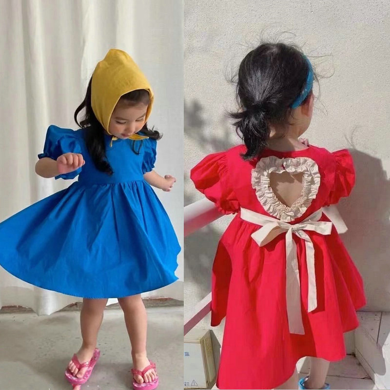 女童裙子日系露背爱心短袖连衣裙公主裙25夏装新款外贸童装代发스토어 가기
