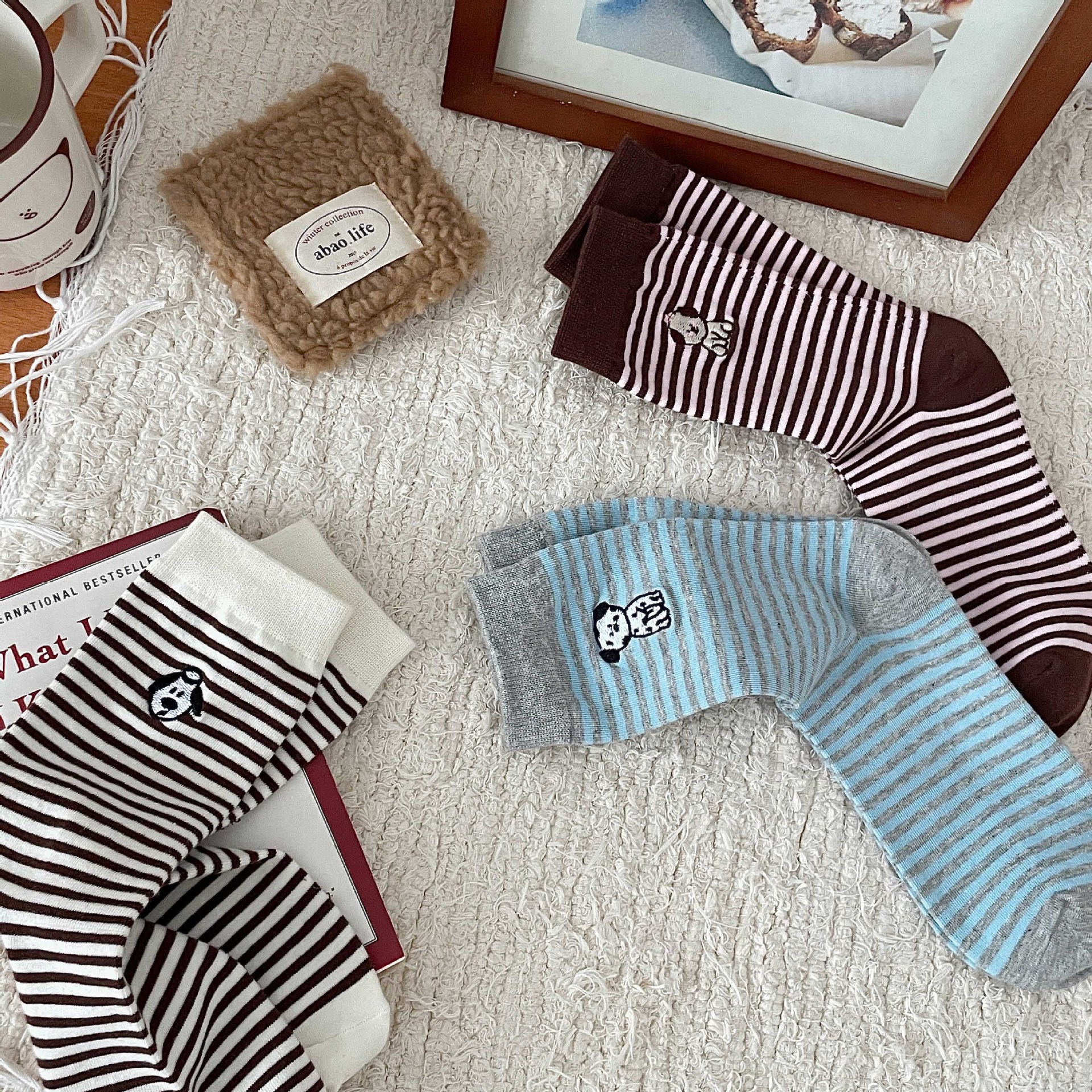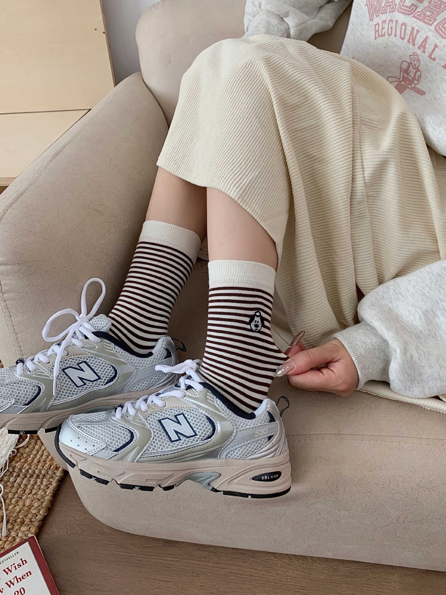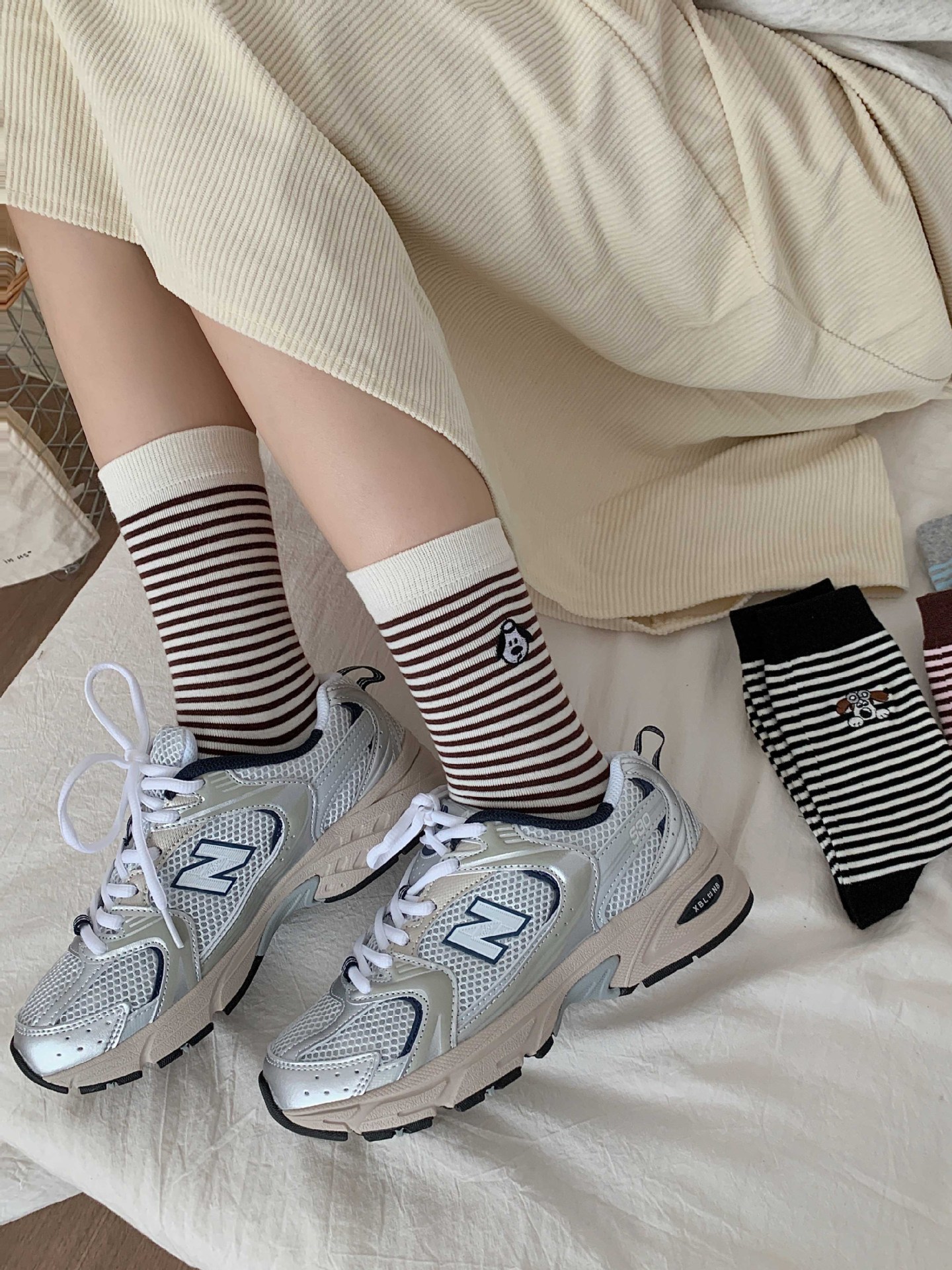 여성용 얇은 중목 양말 일본 스타일 스포츠 스트라이프 양말 봄 가을 겨울 통기성 배색 롱 양말스토어 가기