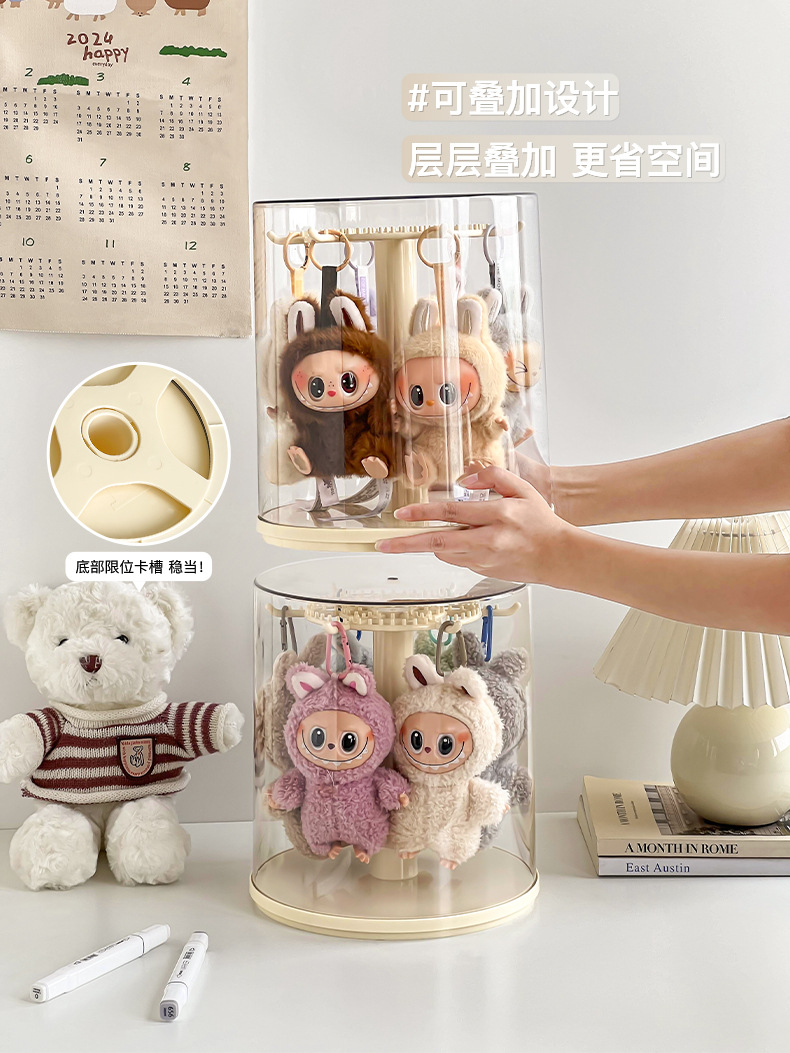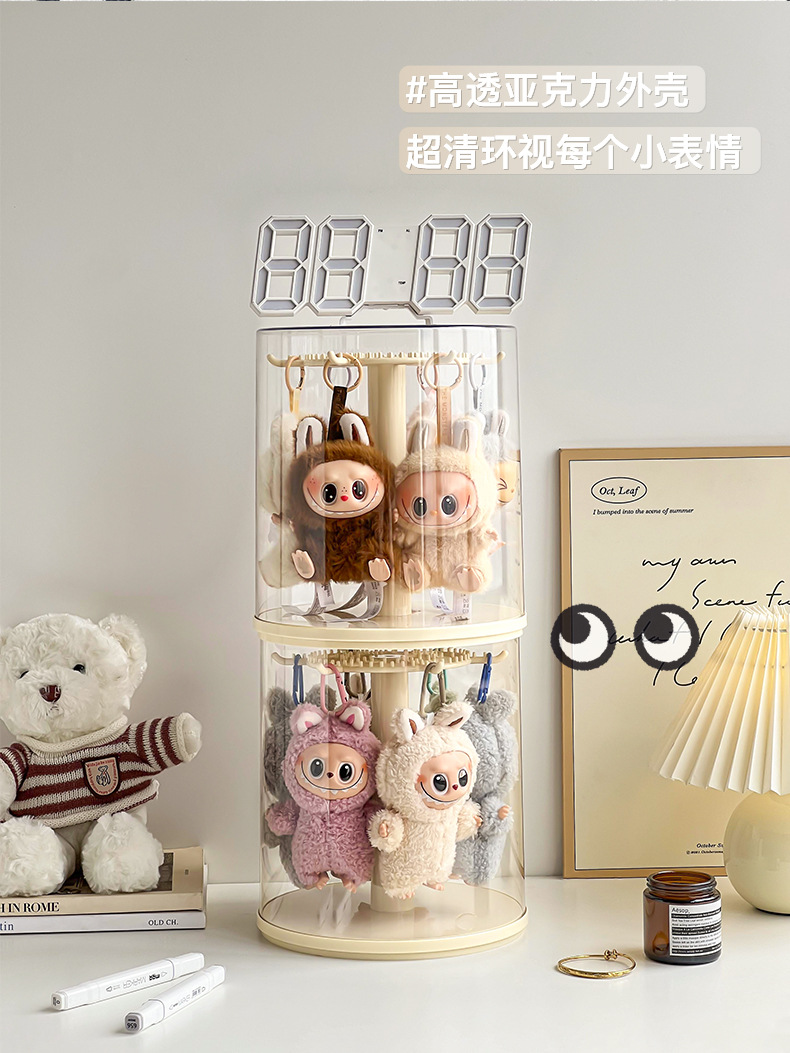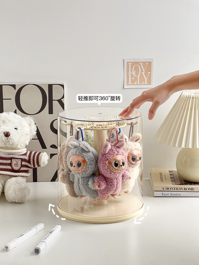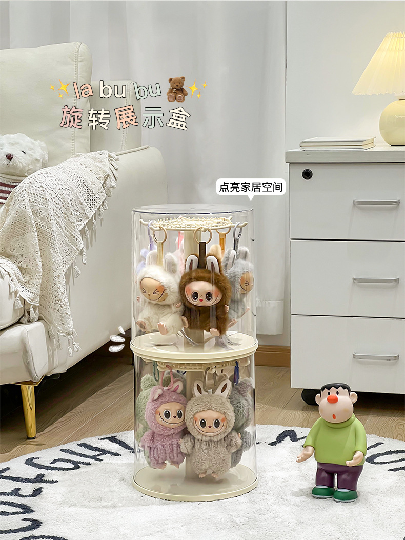 랩 천 펜던트 디스플레이 박스 회전 투명 labubu 플러시 인형 손으로 만든 블라인드 박스 스토리지 디스플레이 랙