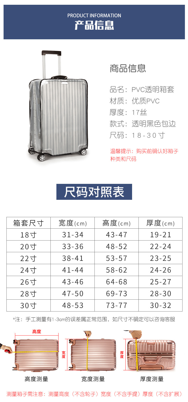 재고 트롤리 케이스 수하물 케이스 보호 커버 제거-무료 투명 PVC 가방 수하물 케이스 먼지 커버