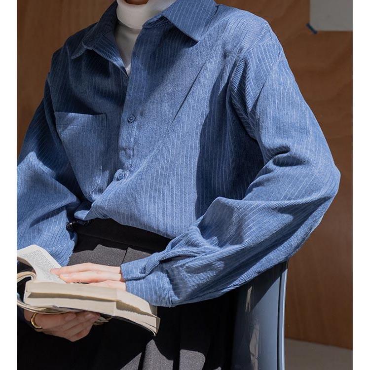클라인 블루 코듀로이 긴팔 셔츠 여성 디자인 센스 틈새 간단한 셔츠 느슨한 슬리밍 긴팔 최고 겨울