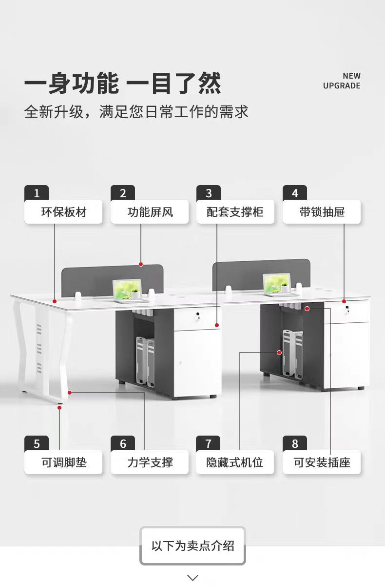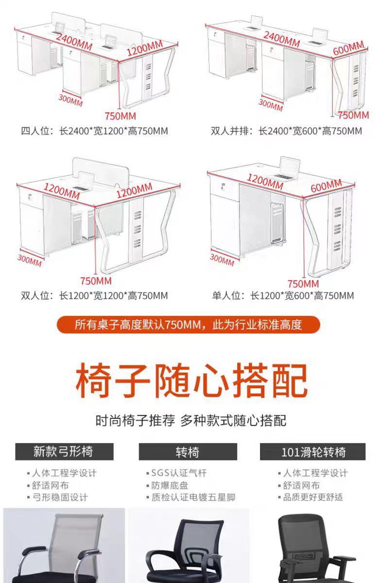 办公桌员工位简约现代办公桌工位桌职员桌椅组合四人位电脑桌椅