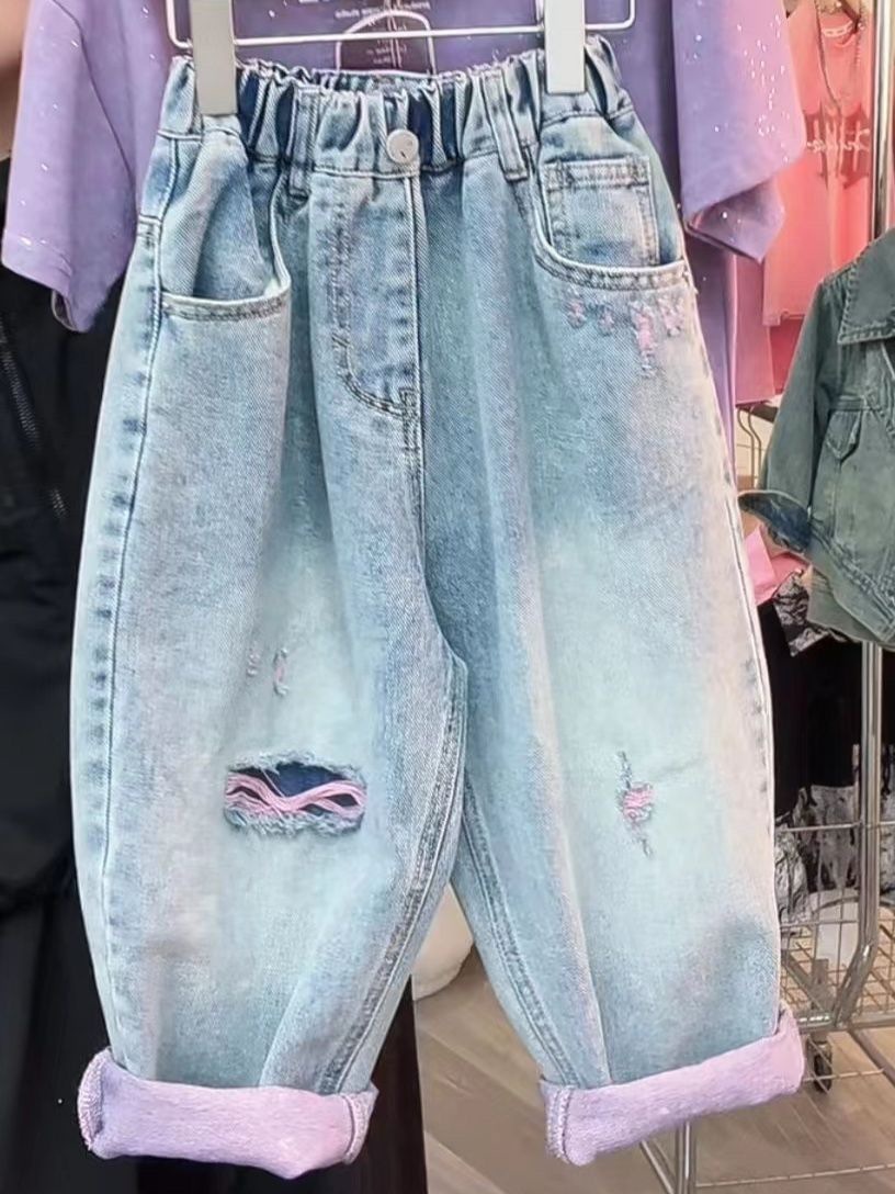 봄과 가을 남녀 아동복 청바지 아기의 서양식 어린이 맞춤형 트렌디 브랜드 한국식 레트로 홀 느슨한 하렘 바지