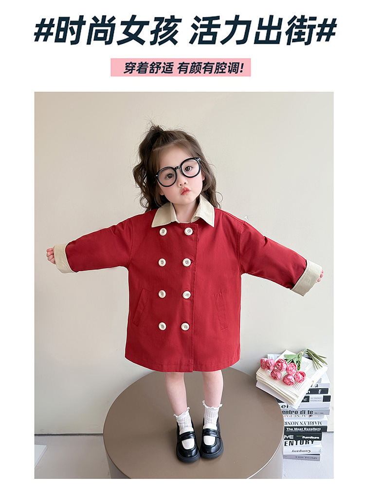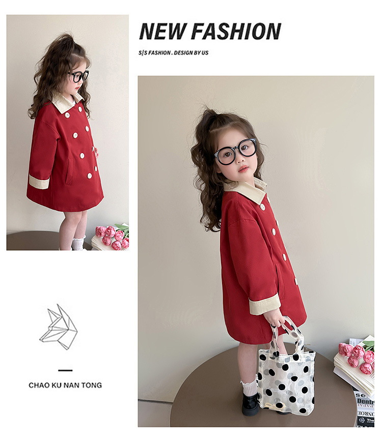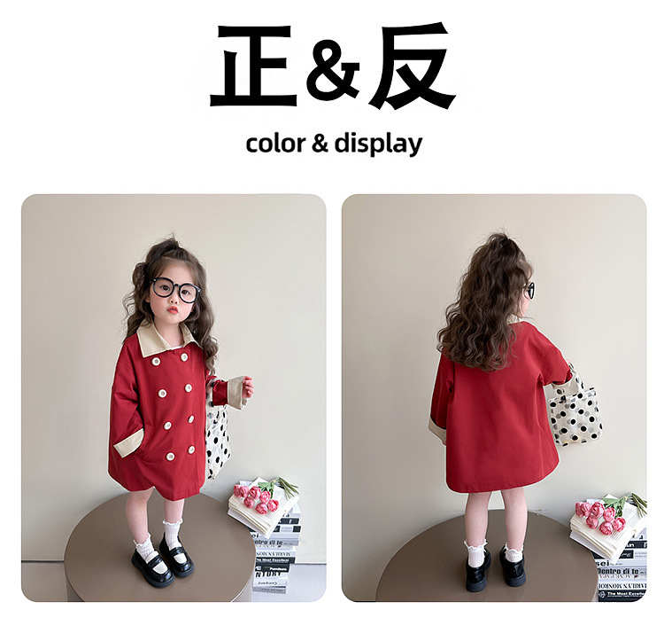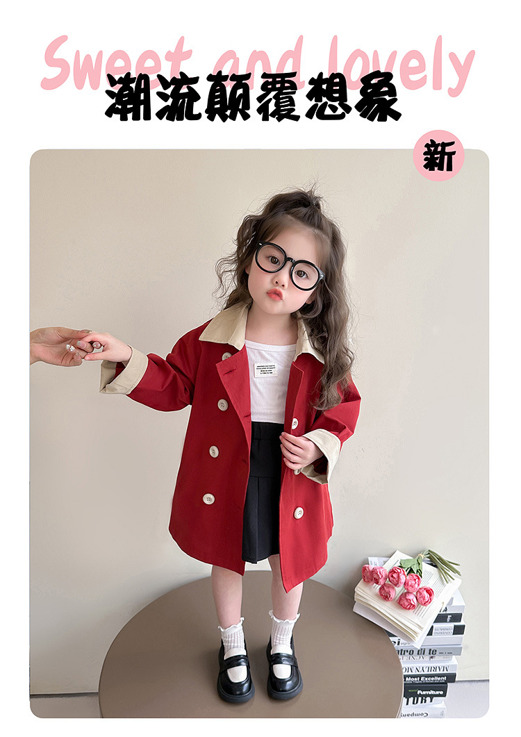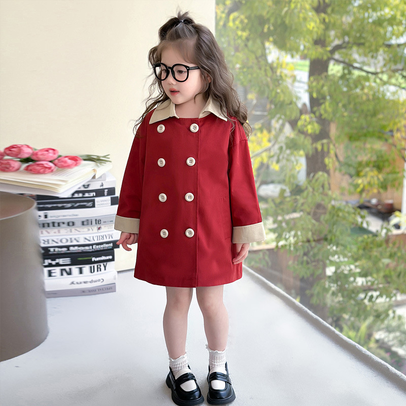 소녀 코트 봄과 가을 2025 새로운 한국 스타일 어린이 바람막이 중간 길이 아기 소녀의 봄 서양식 유행 옷스토어 가기
