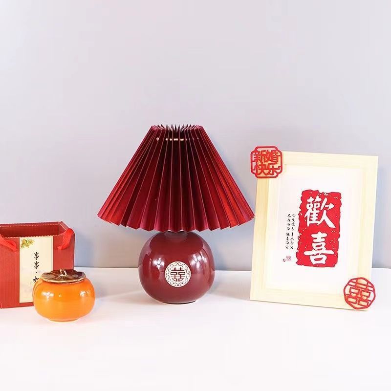 중국 스타일 웨딩 테이블 램프 레드 해피 캐릭터 침실 램프 웨딩 룸 동반 웨딩 롱 램프 따뜻한 로맨틱 침실 분위기 램프스토어 가기