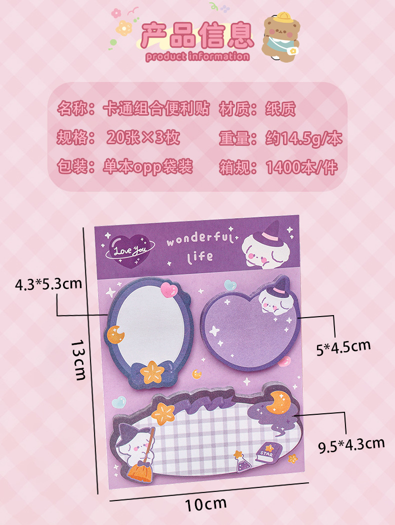포스트잇 노트 높은 컬러 값 스티커 3 대 1 만화 조합 포스트잇 노트 초등학생을위한 창의적인 메시지 모양의 보조 스티커스토어 가기