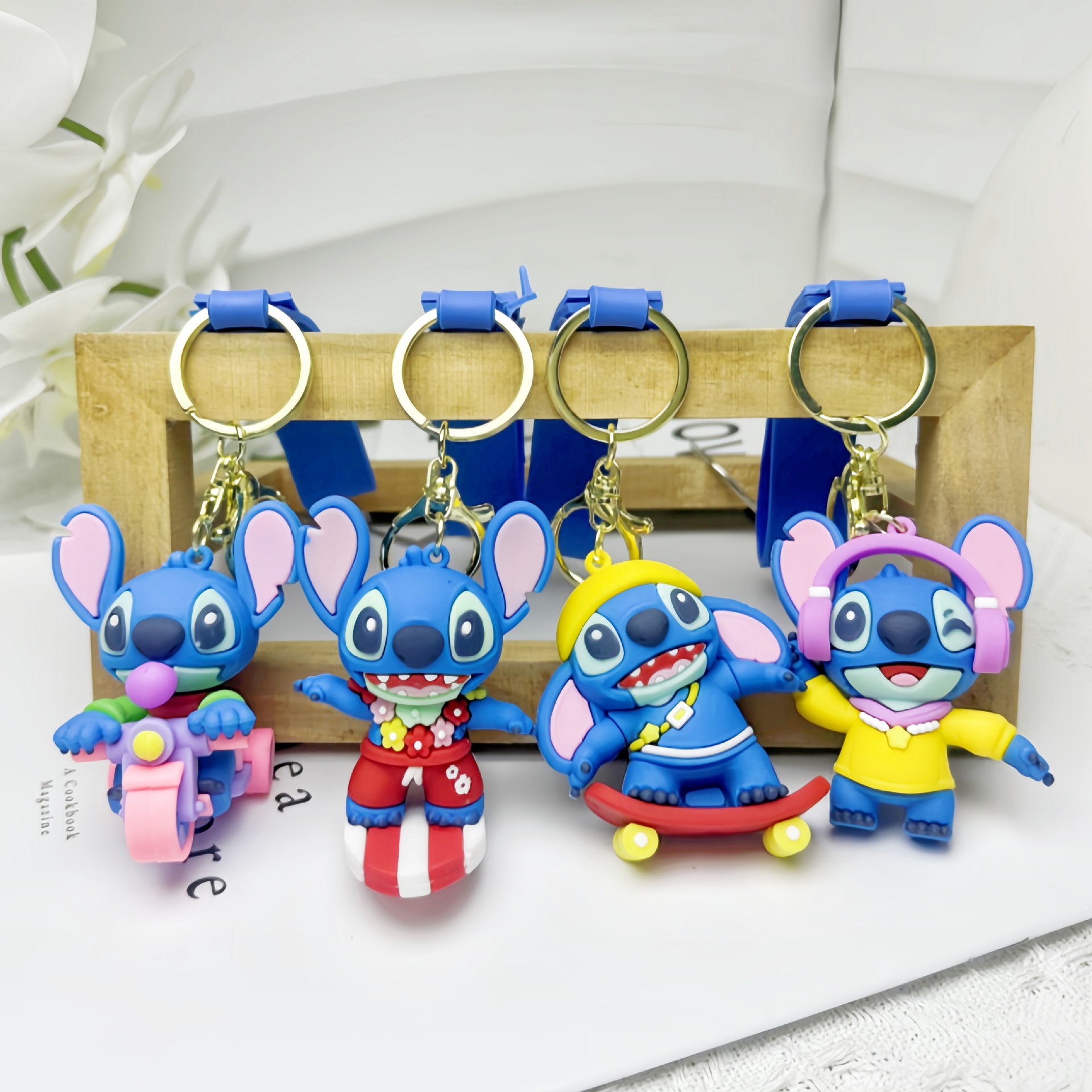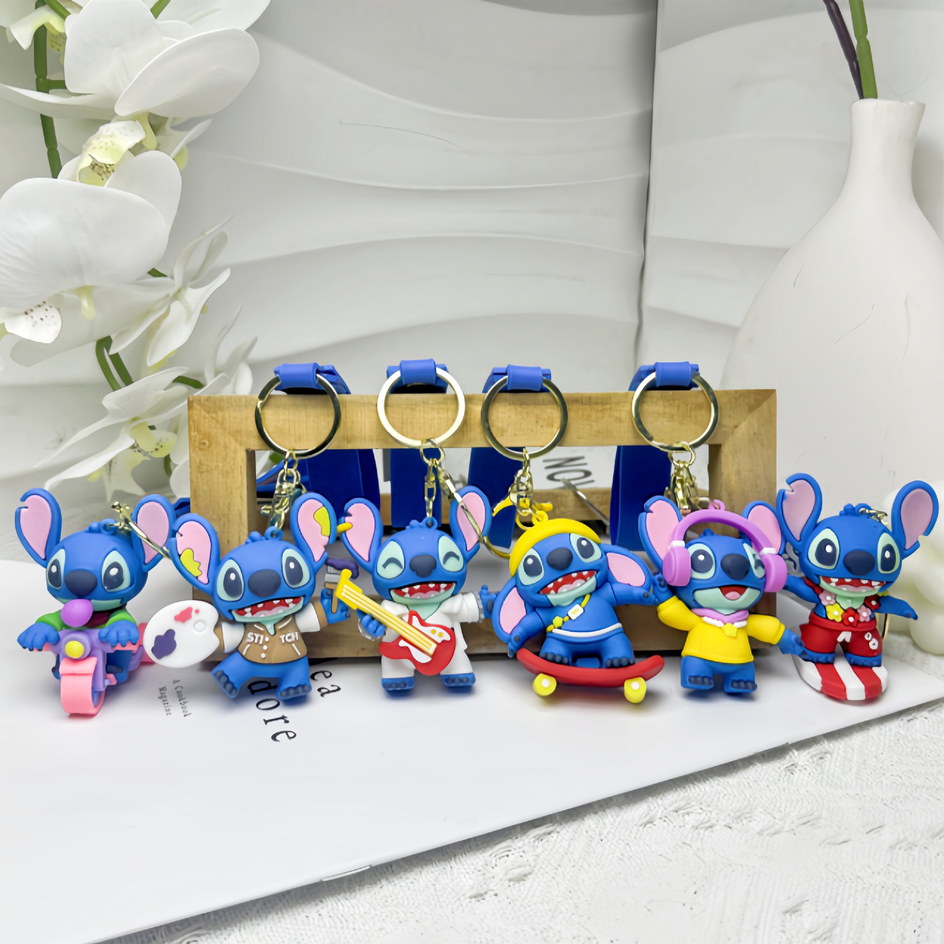 새로운 거리 스티치 키 체인 만화 애니메이션 스티치 인형 펜던트 백팩 펜던트 자동차 키 체인스토어 가기