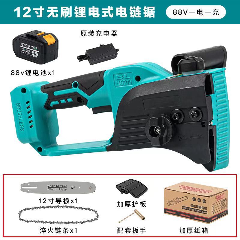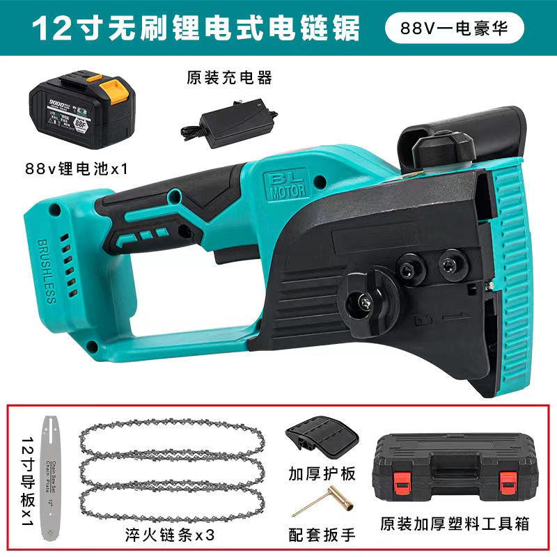 • 12inch 전기 체인톱-88V 배터리 1개, 충전기 1개 및 플라스틱 상자
