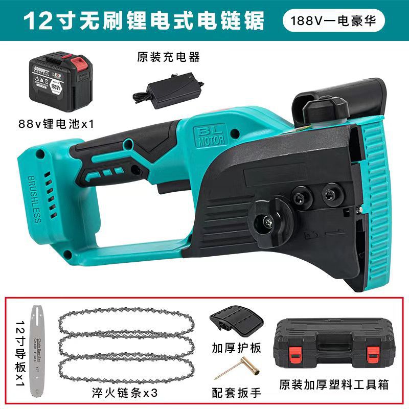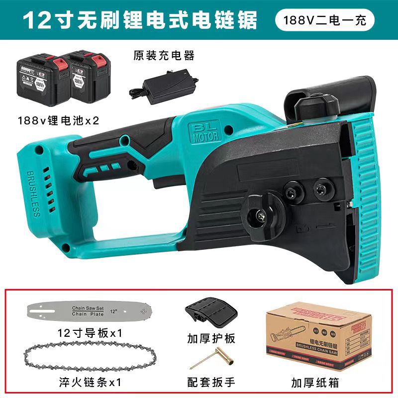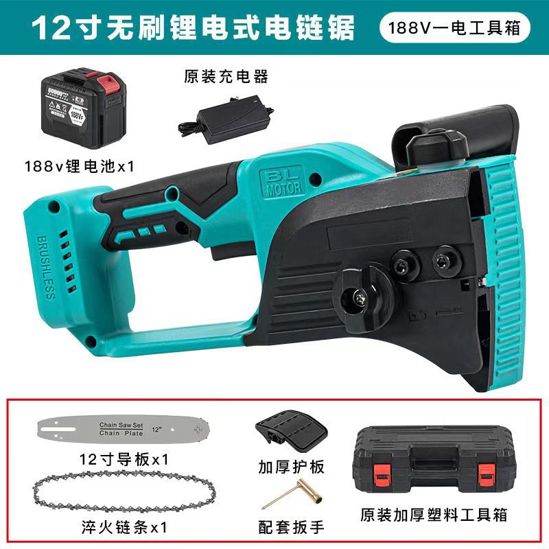 • 12inch 전기 전기톱-188V, 배터리 1개, 충전 1개 및 플라스틱 상자