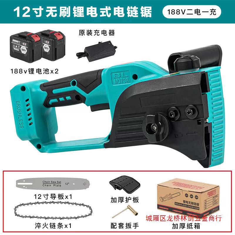 • 12inch 전기 체인톱-188V 배터리 2개, 충전기 1개, 플라스틱 상자 + 체인 2개