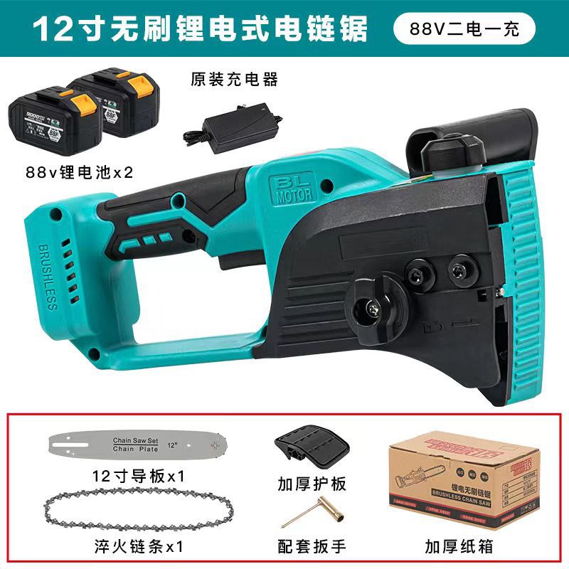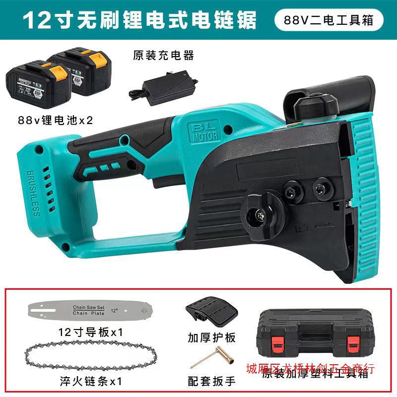 • 12inch 전기 체인톱-88V 배터리 2개, 충전기 1개, 플라스틱 상자 + 체인 2개