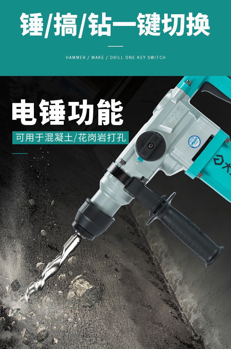 전기 해머 전기 선택 이중 목적 다기능 순수 구리 고출력 충격 드릴 콘크리트 가정용 수력 발전
