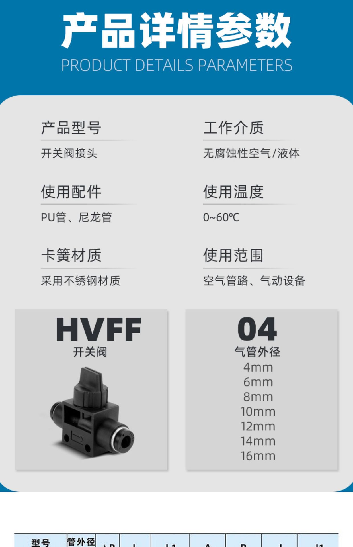 공압 수동 스위치 밸브 HVFF-04/06/08/10/12/14/16 가스 파이프 밸브 수동 제어 밸브스토어 가기
