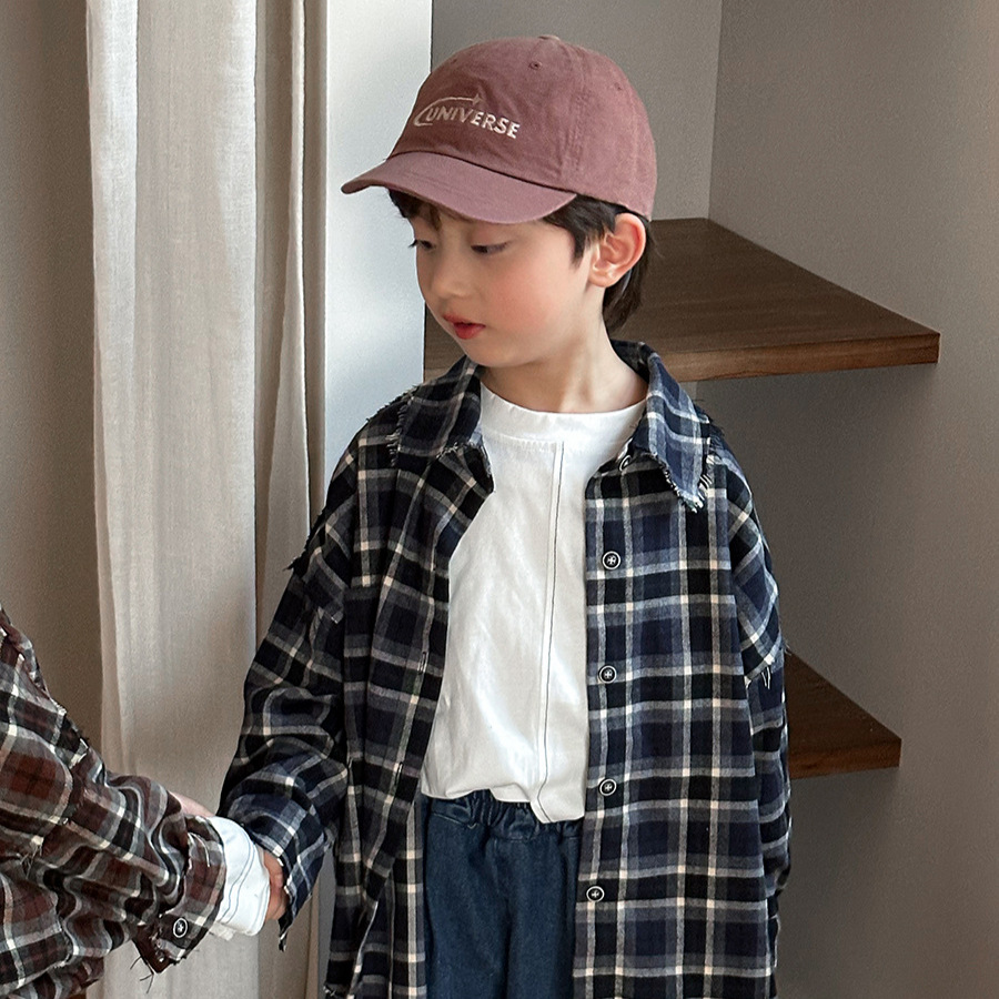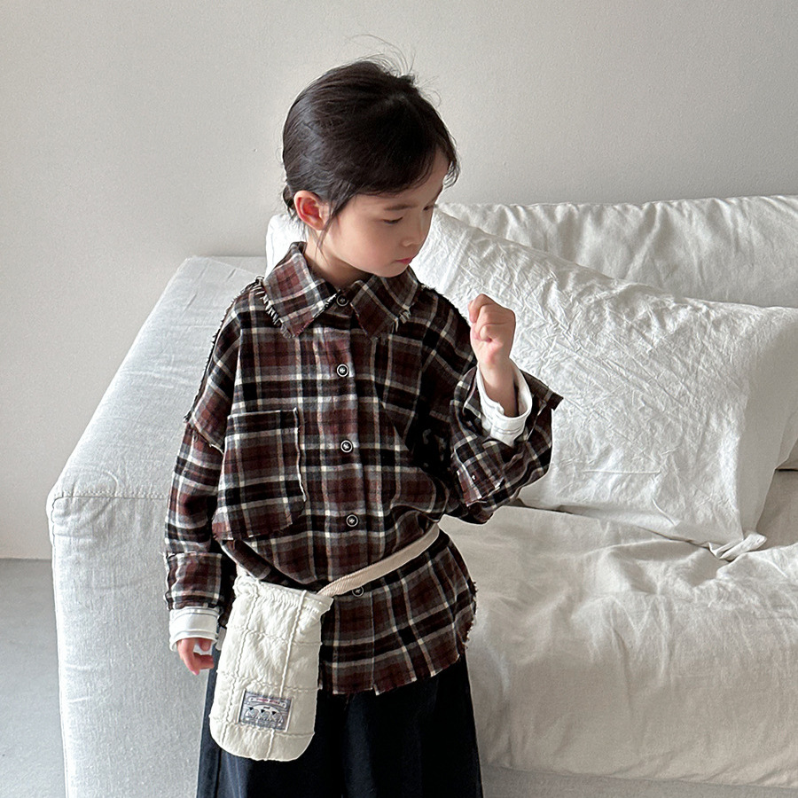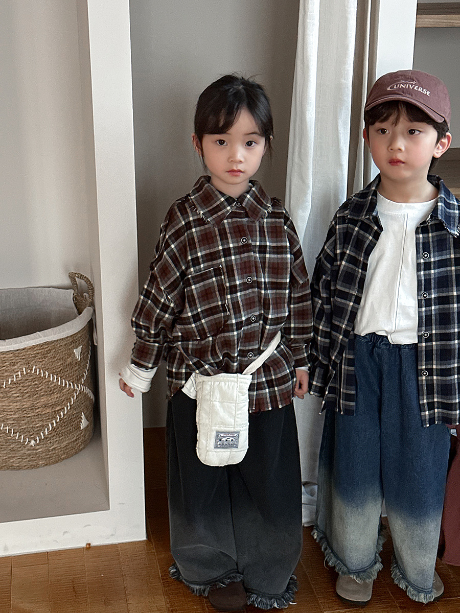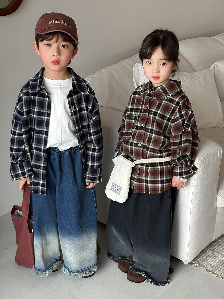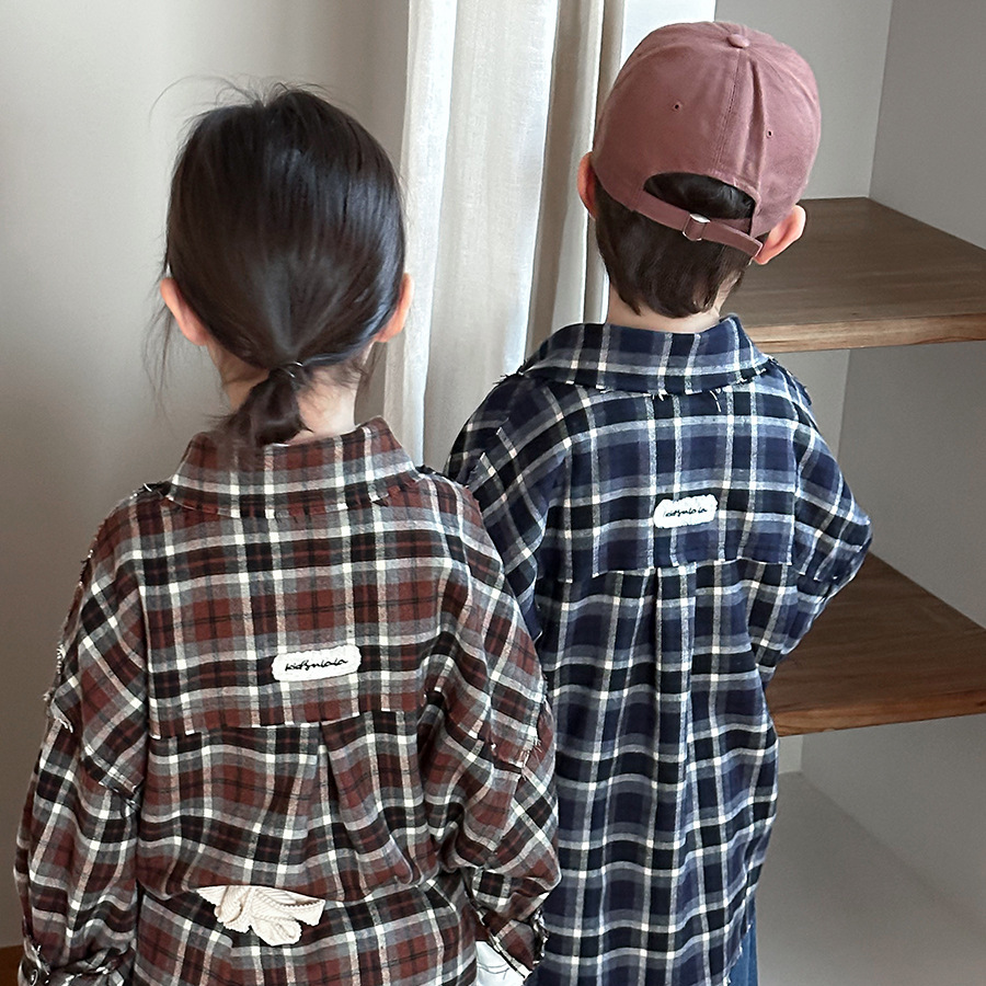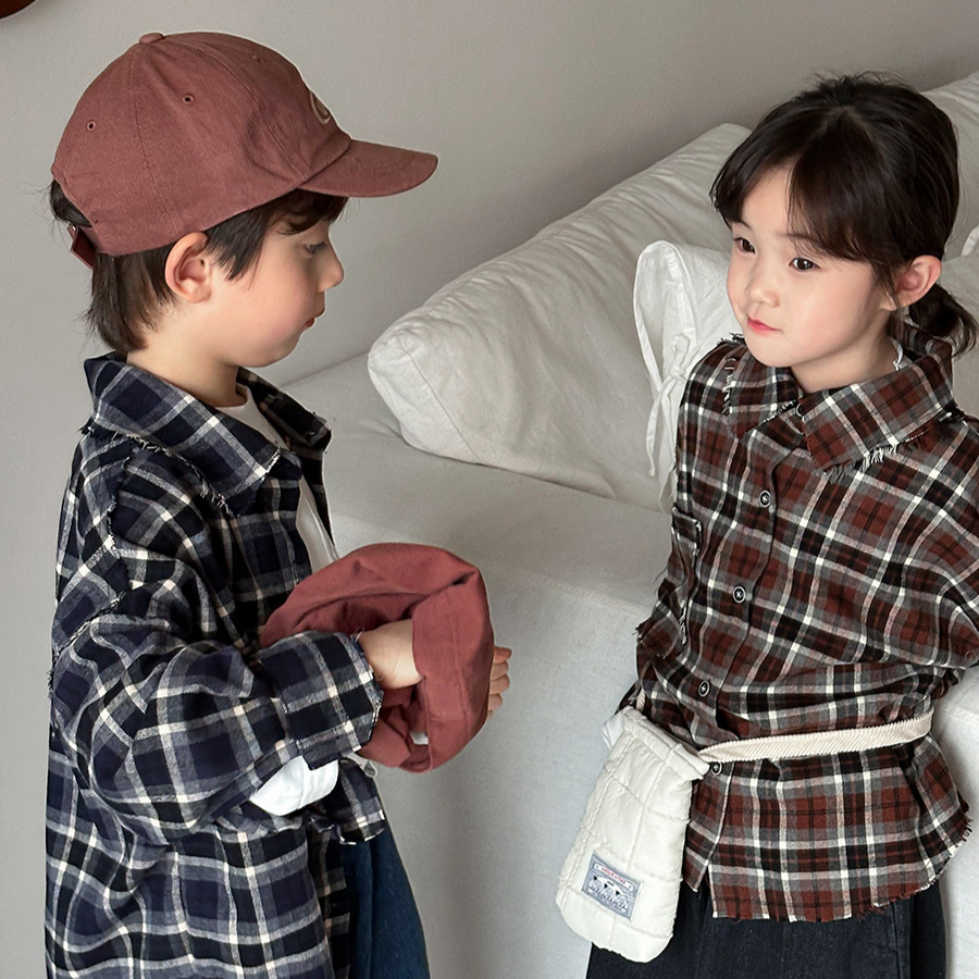 Jiaye 어린이 제품 2025 어린이 가을 새로운 격자 무늬 긴팔 셔츠 남성과 여성 베이비 포레스트 복고풍 모피 가장자리 재킷스토어 가기