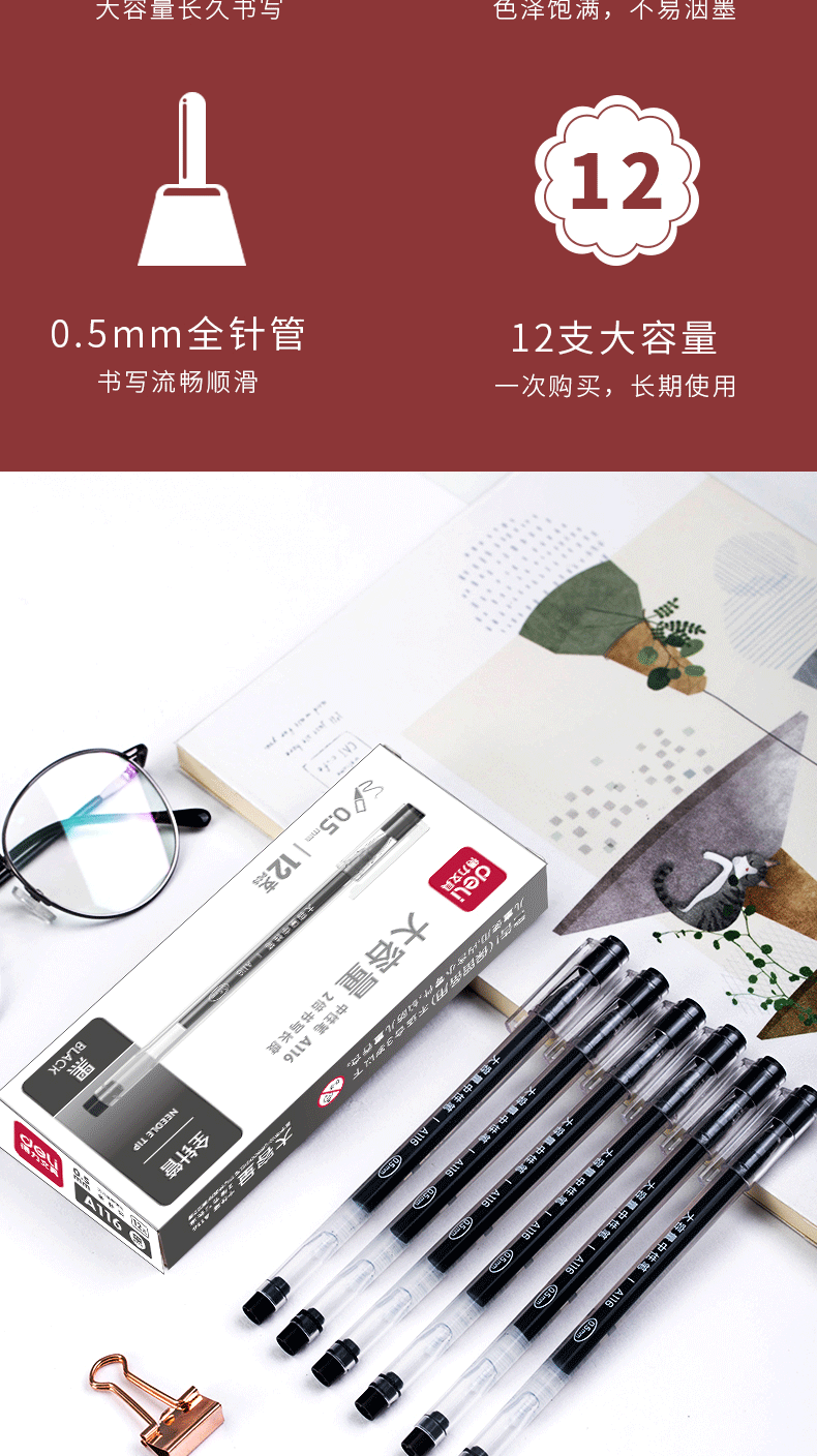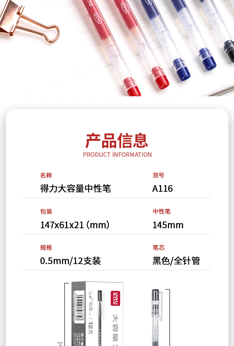 델리 문구 A116 젤 펜 0.5 바늘 머리 대용량 사인 펜 도매 검은 펜 사무실 펜