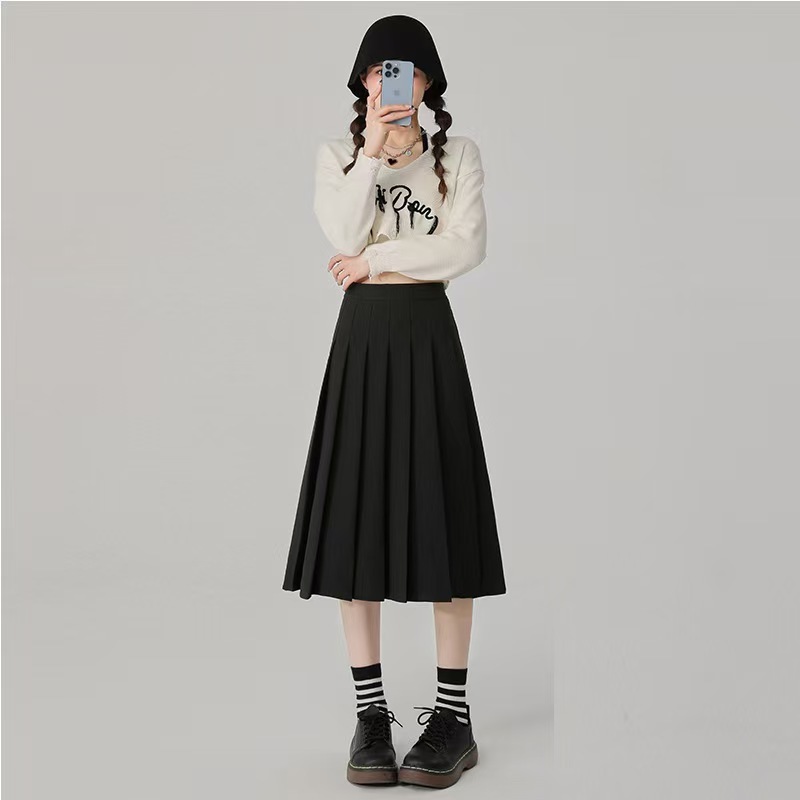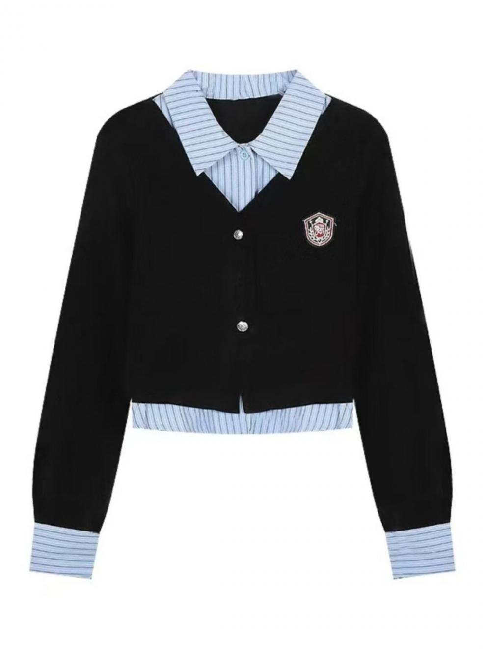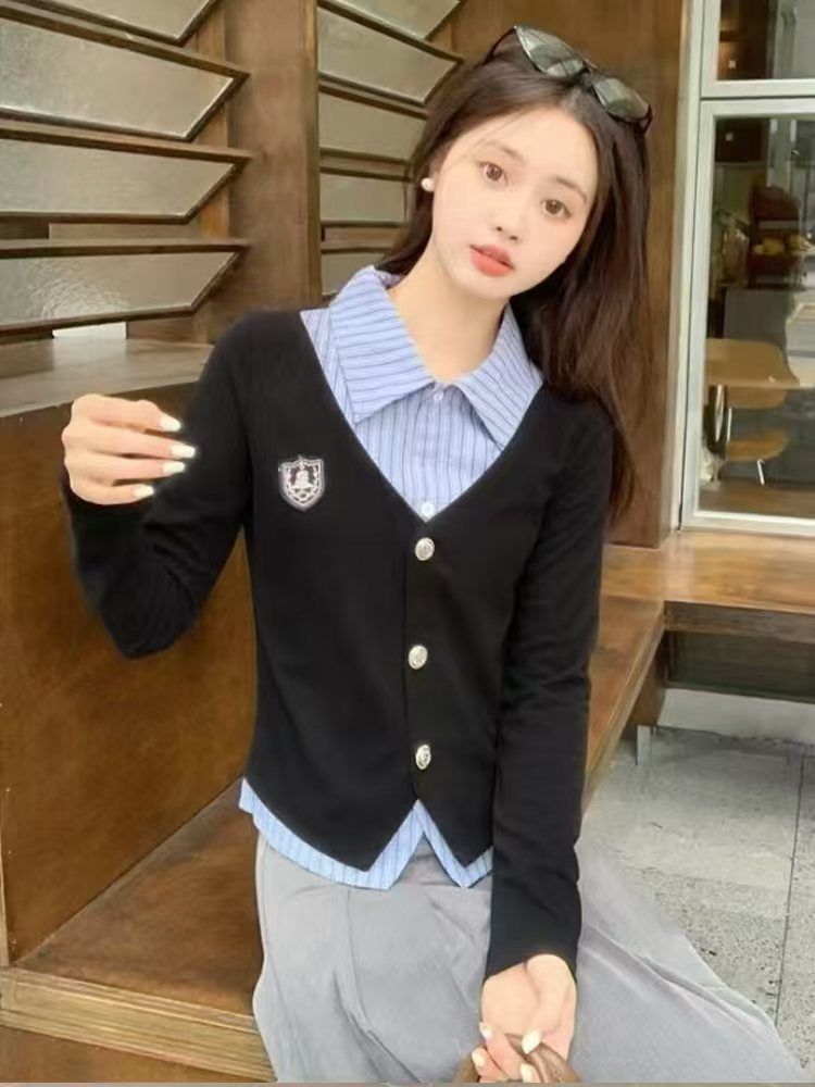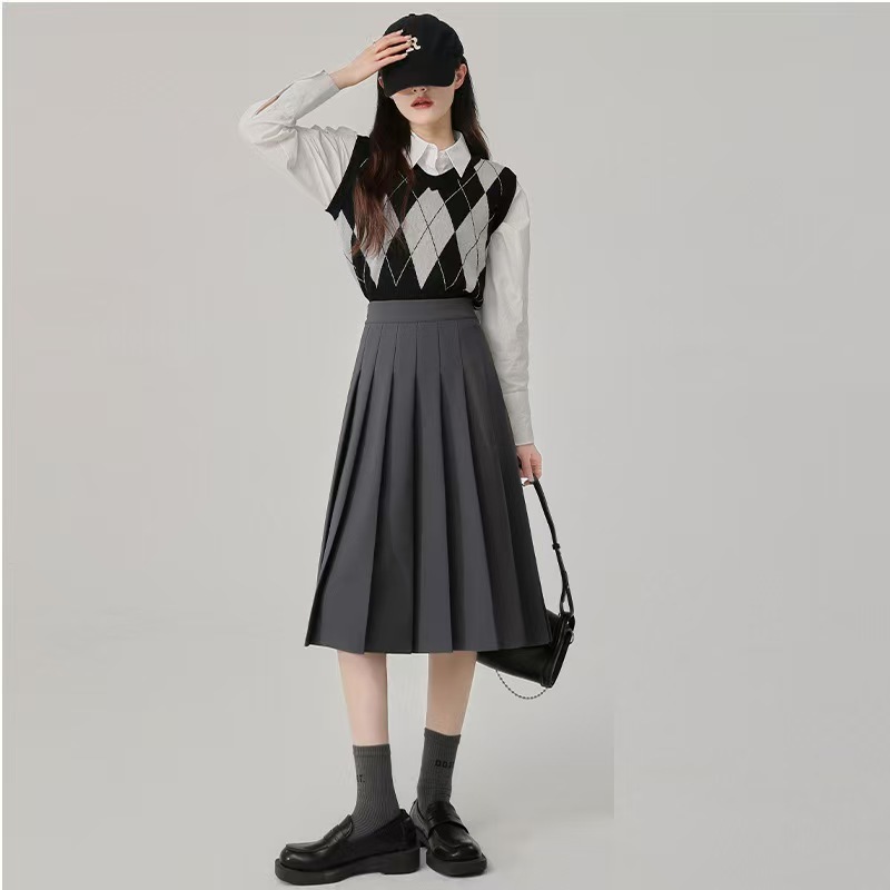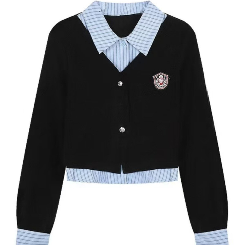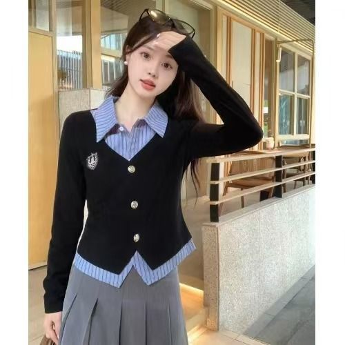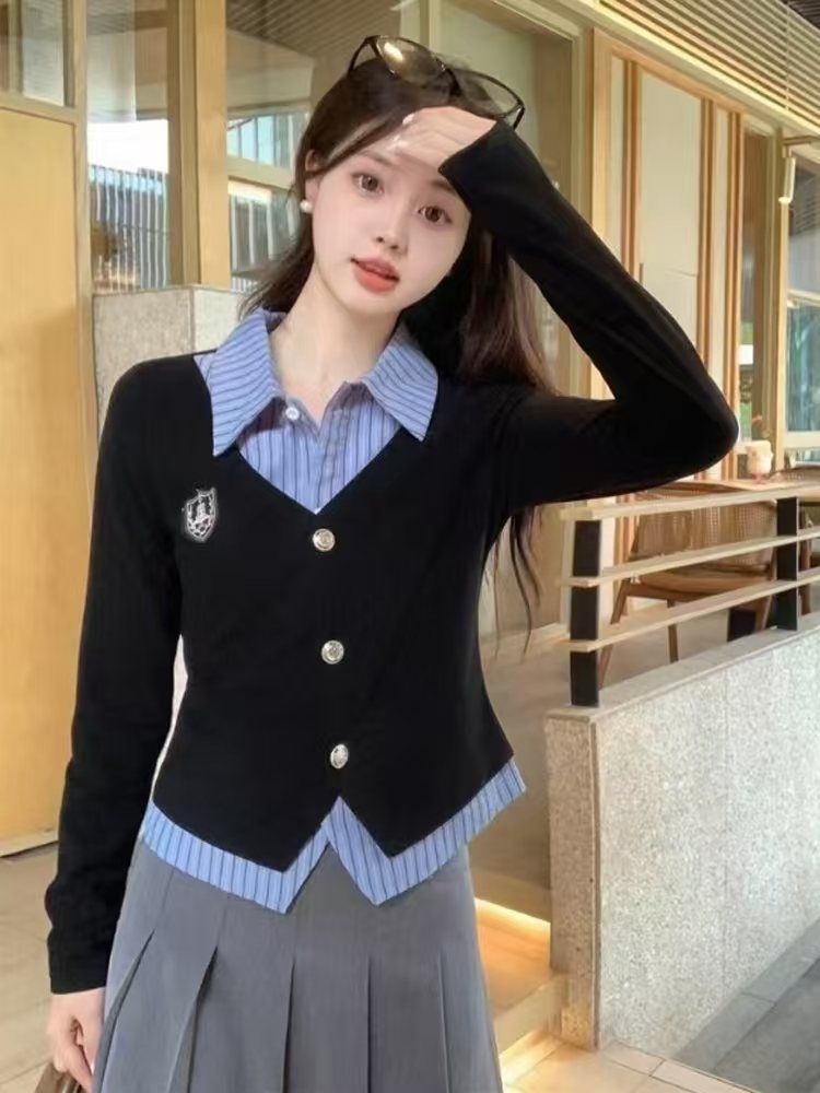 가짜 투피스 셔츠 탑 여성 가을과 겨울 2025 새로운 회색 스커트 학업 스타일 세트 스커트스토어 가기