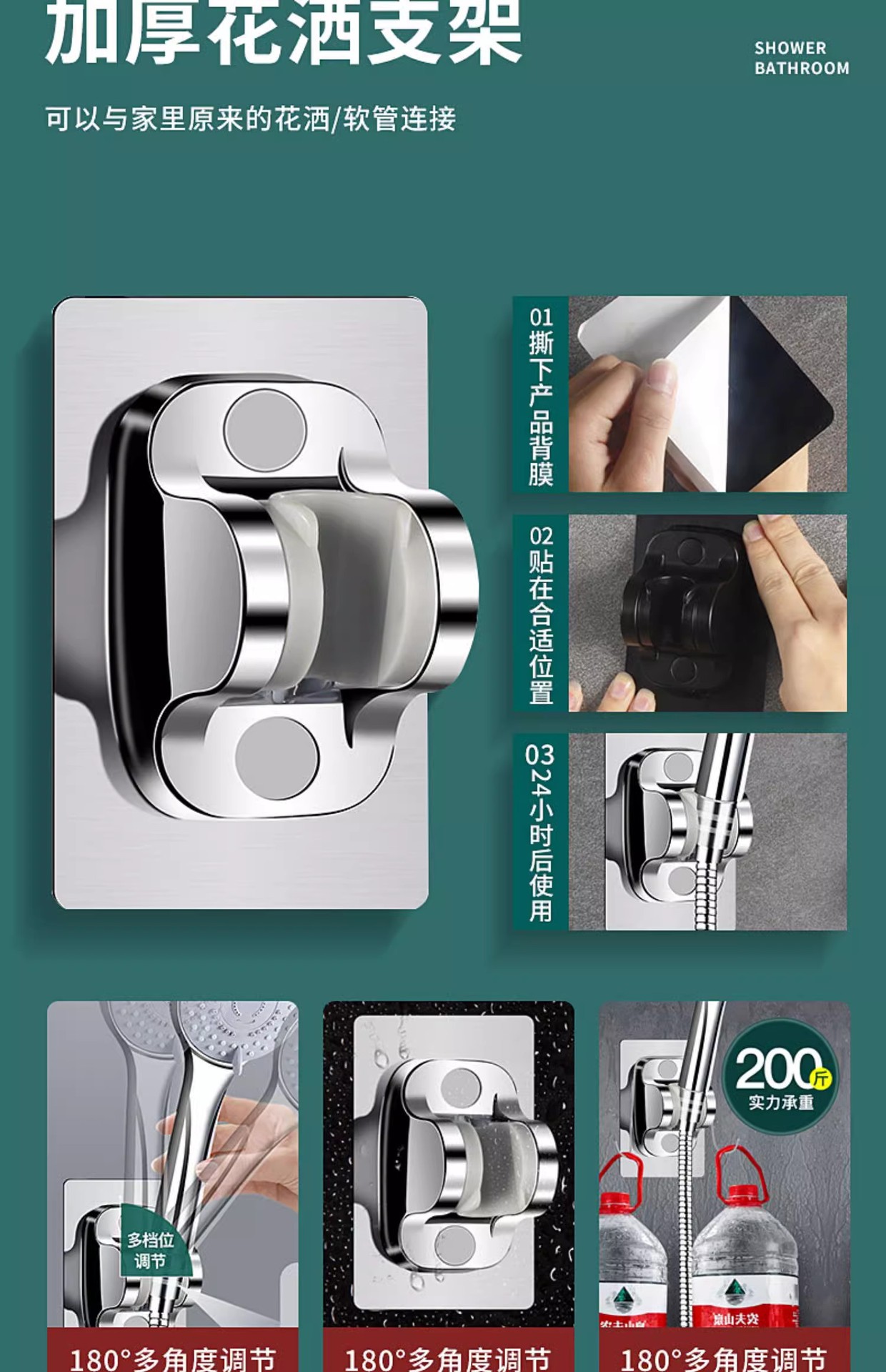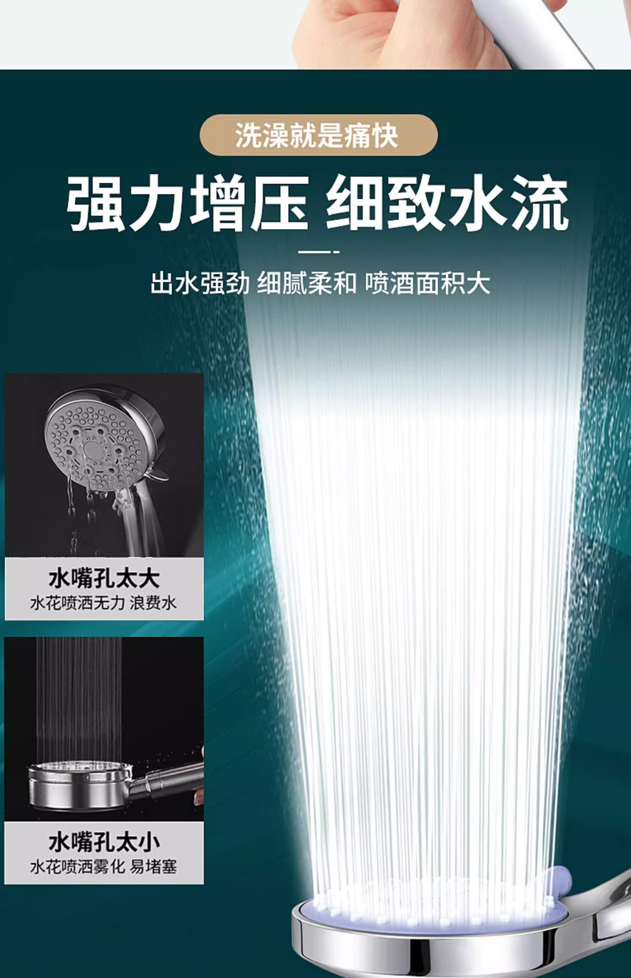 • 300홀 슈퍼차저 샤워기 + 2m 방폭 호스 + 못이 없는 공간 알루미늄 브래킷