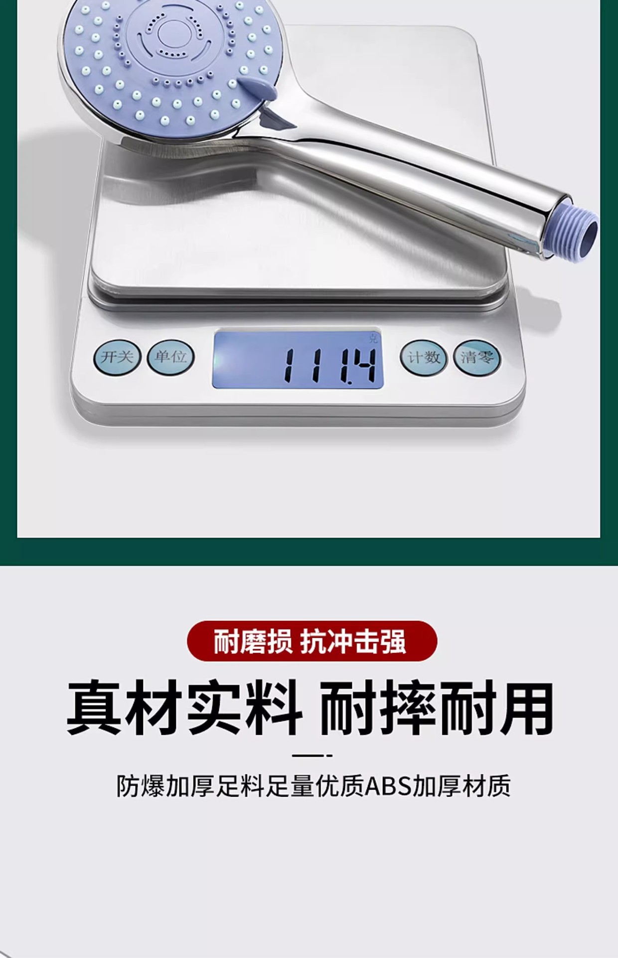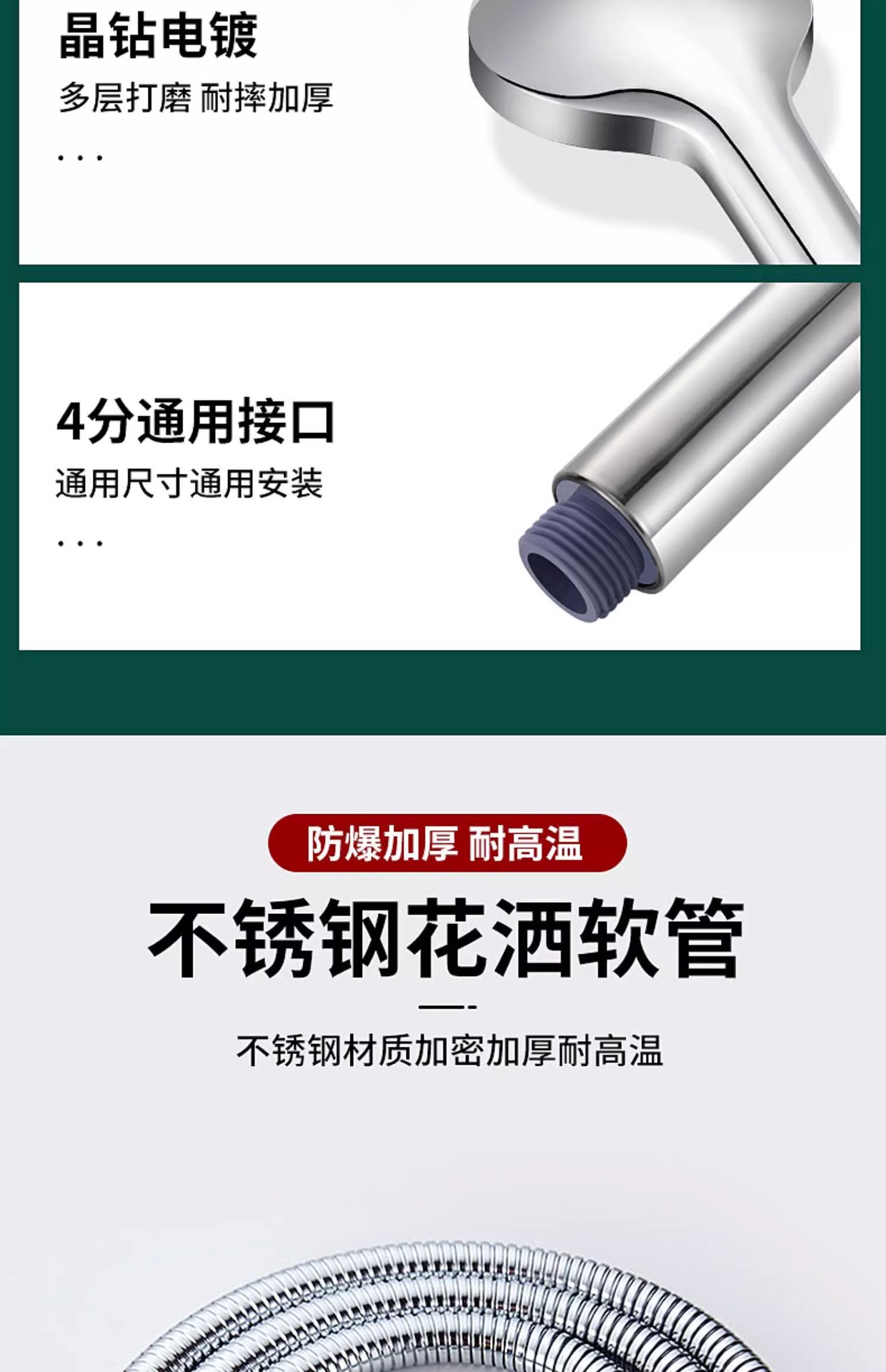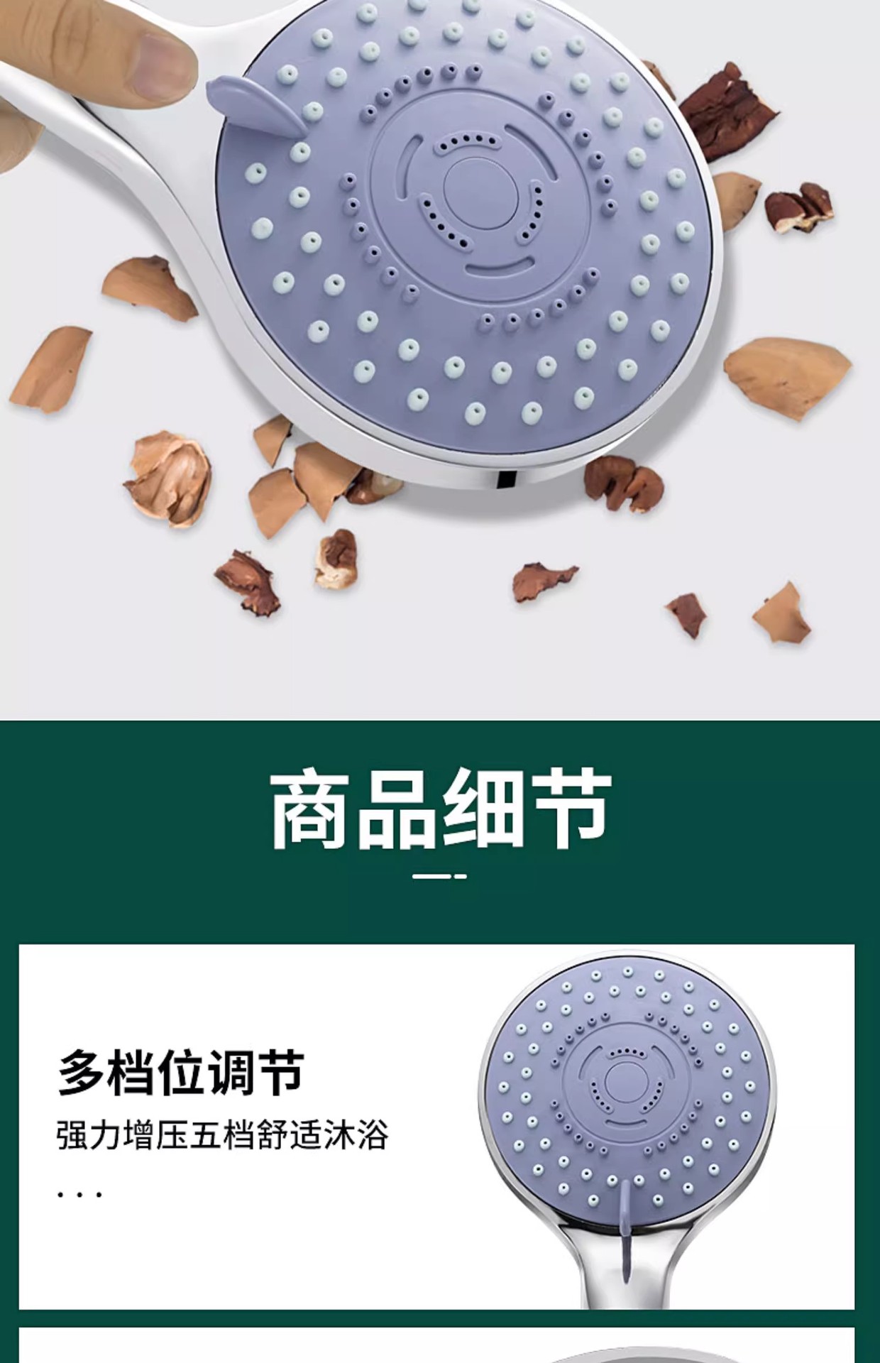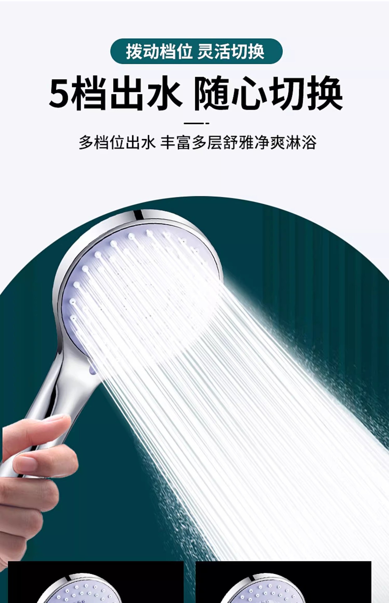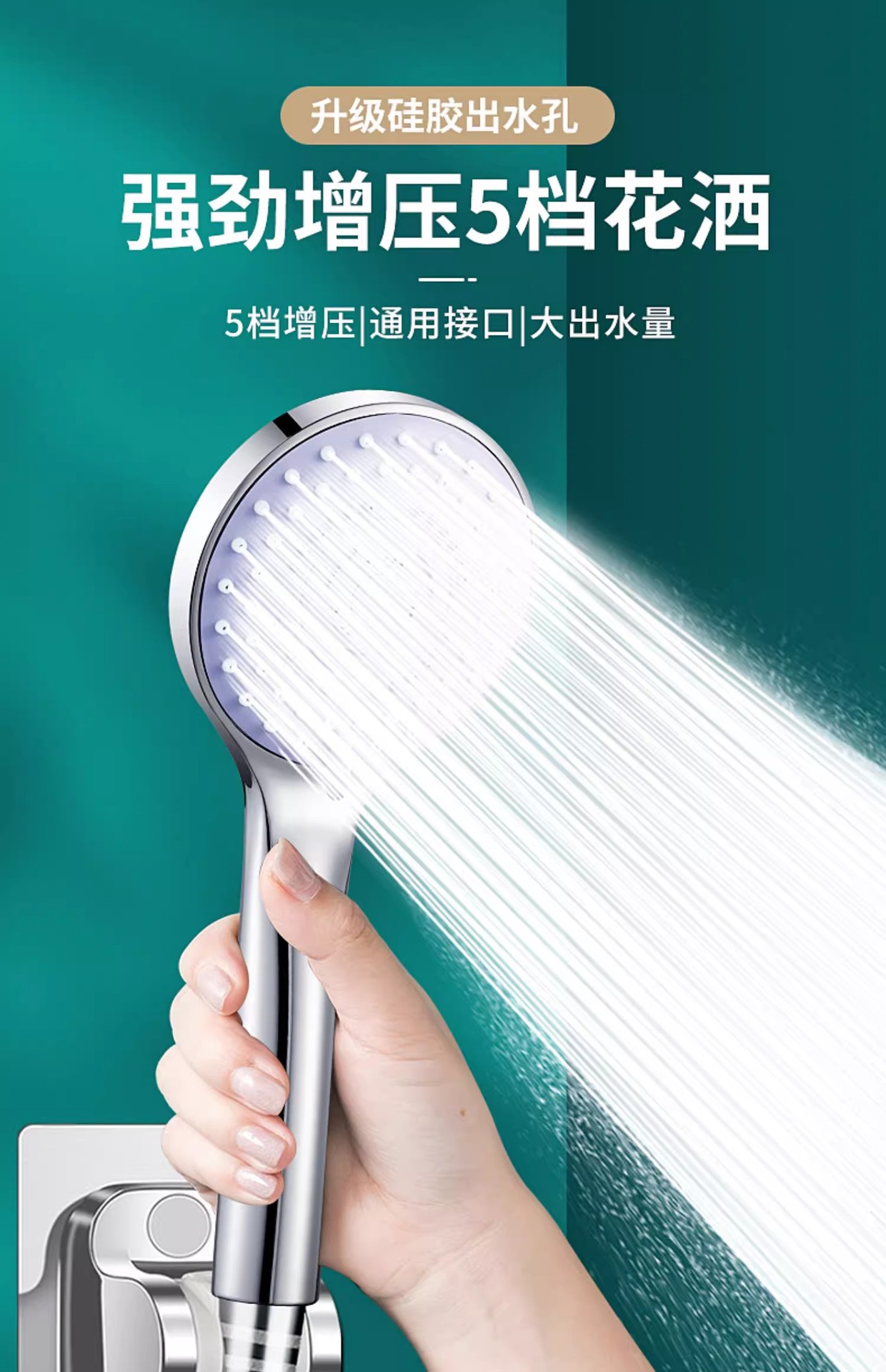 • 전기도금된 5단 대형 물 배출구 샤워 + 1.5m 호스 + 일반 브래킷