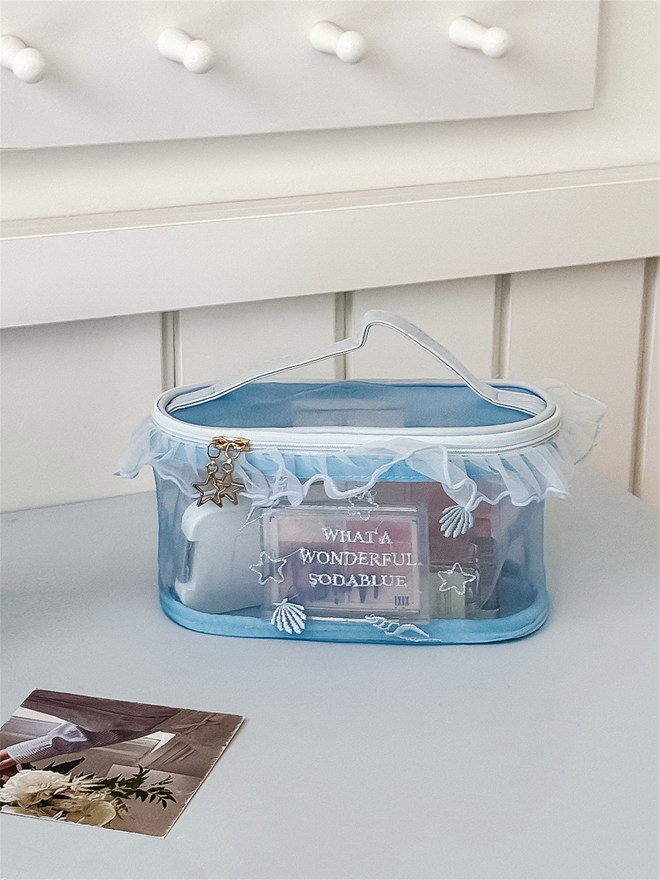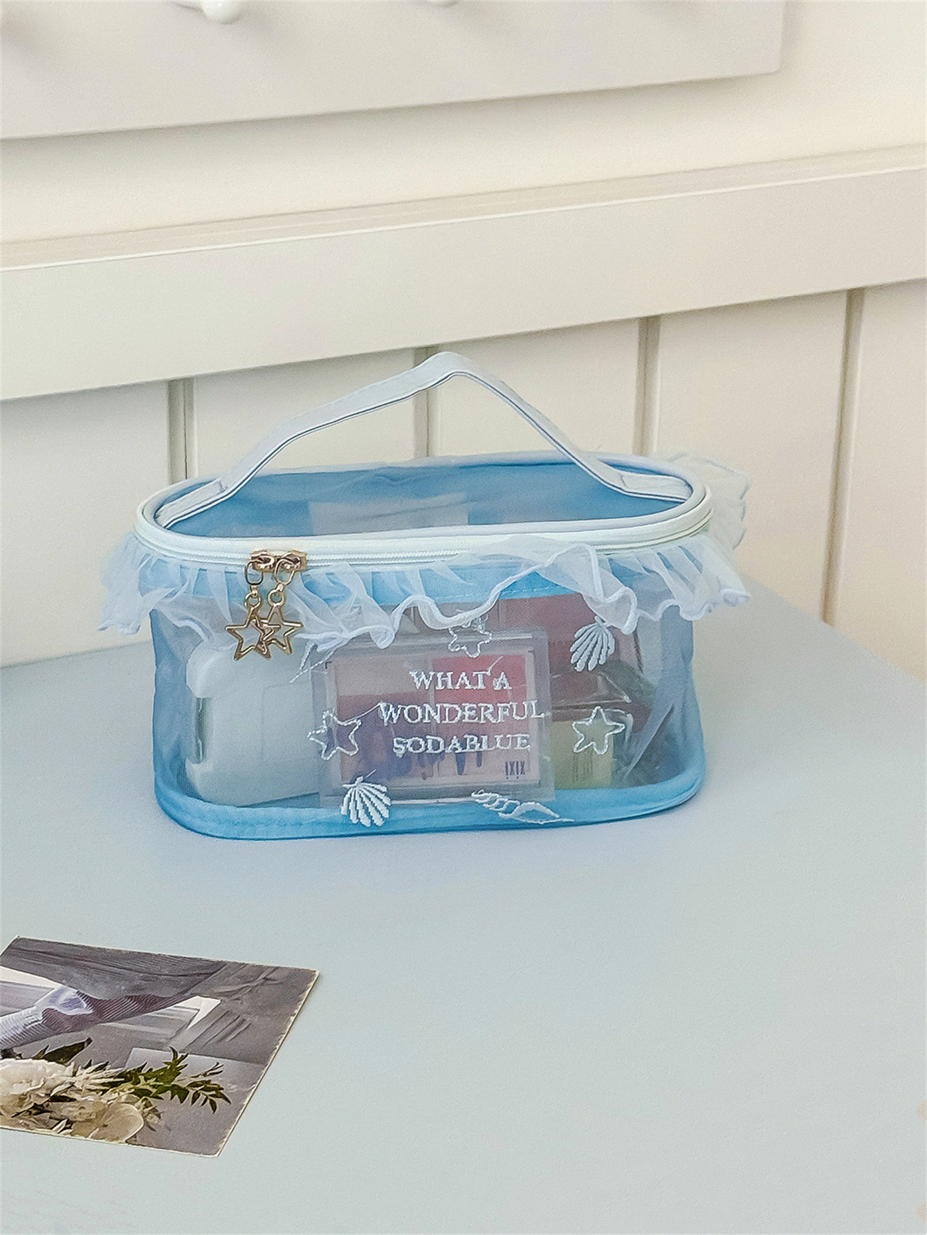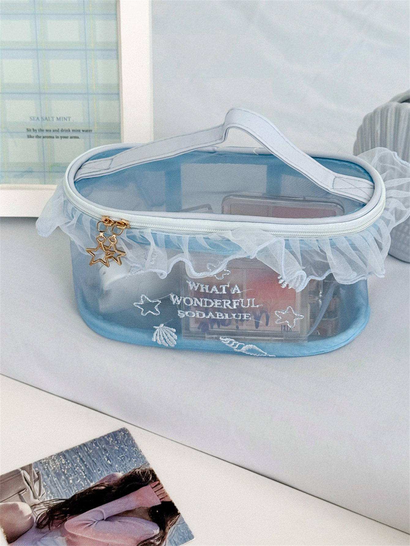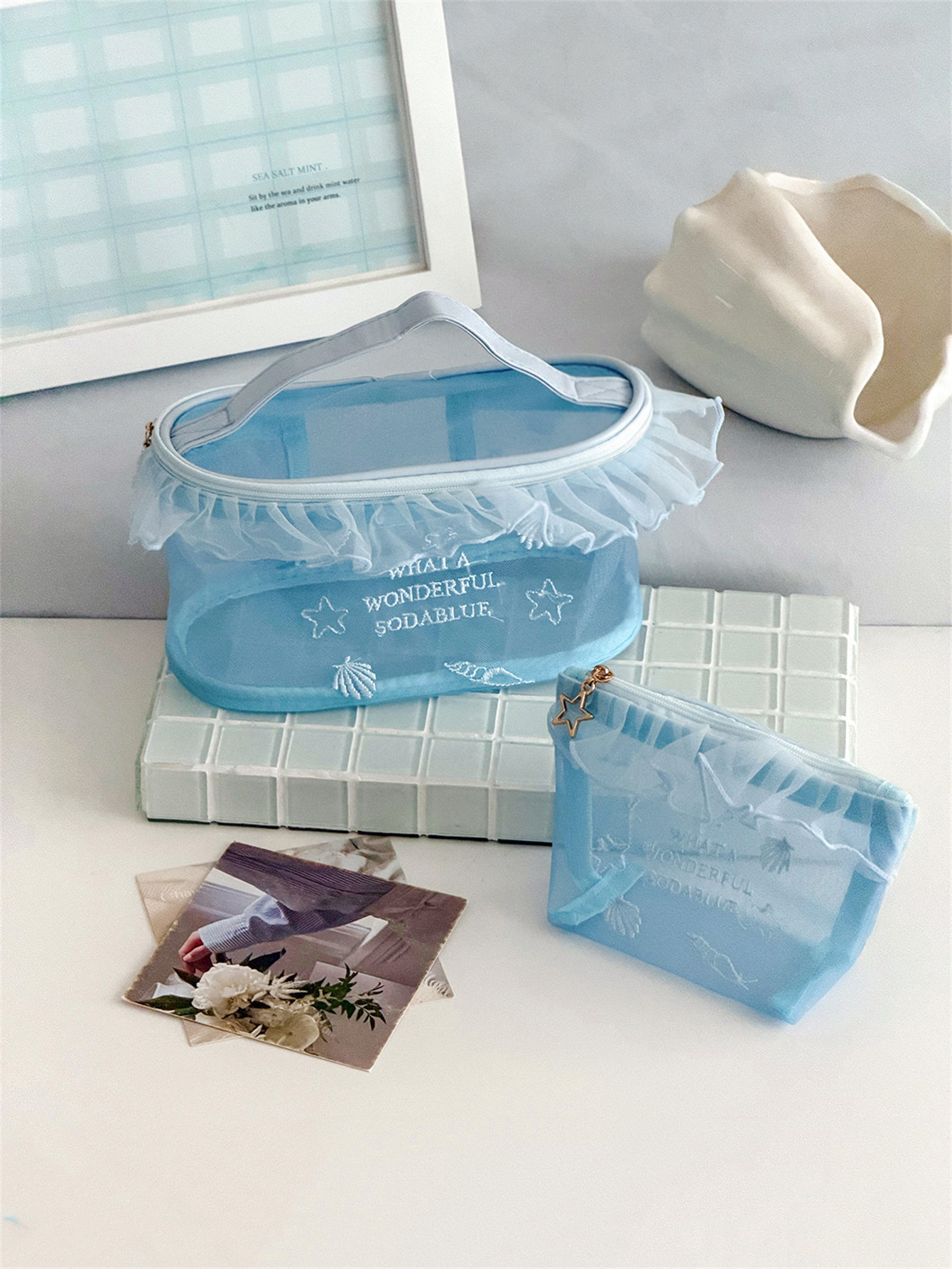 荷叶边透气网纱包高颜值学生便携口红小样收纳包